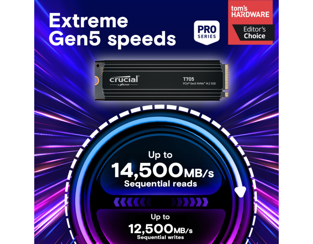 | Накопичувач SSD M.2 2280 2TB T705 with Heatsink Micron (CT2000T705SSD5) — це інноваційний пристрій, розроблений спеціально для тих, хто прагне отримати бездоганну швидкість, надійність і ефективність у своїх обчислювальних системах. Завдяки вражаючому об’єму пам'яті 2 TB, цей накопичувач пропонує величезний простір для зберігання ваших найцінніших файлів, незалежно від того, чи це грандіозні ігрові проекти, високоякісне відео або потужні програми. Основою даного SSD є передова 3D TLC NAND флеш-пам'ять, яка забезпечує виняткову довговічність і стабільність роботи. Використання цієї технології дозволяє досягати неймовірної швидкості читання до 14,500 Mb/s та запису 12,700 Mb/s. Це робить цей SSD ідеальним для ігрових фанатів та професіоналів, які потребують швидкості та моментального відгуку навіть за найінтенсивніших навантажень. Підключення через PCI Express 5.0 x4 інтерфейс забезпечує феноменальну пропускну здатність даних, дозволяючи використовувати можливості вашого комп'ютера на максимум. Така інтеграція гарантує безперервність та стійкість передачі даних, навіть у випадках багатозадачних операцій або великих навантажень. Важливою особливістю накопичувача є наявність ефективного радіатора (Heatsink), що захищає від перегріву при інтенсивних навантаженнях. Це не тільки подовжує термін експлуатації SSD, але й забезпечує стабільну роботу в гарячих умовах, що робить його незамінним для геймерів і користувачів, які обробляють великі потоки даних. Компактний форм-фактор M.2 2280 з товщиною всього 8.6 мм робить накопичувач ідеальним для інтеграції в будь-який комп'ютер або ноутбук, зберігаючи при цьому оптимальний простір для вентиляції системи. Його компактний і легкий дизайн робить цей накопичувач універсальним рішенням для різноманітних конфігурацій пристроїв. Незважаючи на високу продуктивність, споживання енергії на рівні 11 Вт робить цей SSD ефективним рішенням, що знижує загальні витрати на електроенергію. Ви отримуєте високу швидкість і надійну роботу вашого пристрою без додаткових витрат. Отже, SSD M.2 2280 2TB T705 with Heatsink Micron — це ваш шлях до нових обчислювальних можливостей за рахунок інноваційних технологій та конструктивних рішень. Нехай це рішення стане вашим ключем до нових горизонтів швидкості та безпеки даних. |