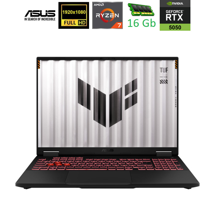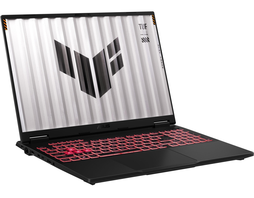 | Серйозні ігрові характеристики Новий представник сімейства ігрових ноутбуків, TUF Gaming A16, може похвалитися характеристиками, що дійсно вражають, відкриваючи шлях до найкращих ігор. Новий рівень продуктивності Приготуйтеся до вражаючої ігрової продуктивності з відеокартою NVIDIA GeForce RTX для ноутбуків, якою може бути оснащений новий TUF Gaming A16 2025-го модельного року. Завдяки найсучаснішим технологіям, таким як DLSS 4, Multi Frame Generation і трасування променів, A16 дарує неймовірні враження від найновіших і найбільш вимогливих до графічної продуктивності ігор. Абсолютно новий дизайн Дизайнерська ідея, реалізована в TUF Gaming A16, полягає у поєднанні потужності й портативності. Маючи масу трохи менше 2.2 кг і товщину від 17.9 мм, ноутбук A16 легко поміститься в більшість сумок, рюкзаків і навіть портфелів, тож ви зможете взяти його із собою будь-куди. Акумулятор ємністю 90 Вт*год допоможе вам довше грати чи працювати в автономному режимі, а завдяки можливості заряджання через порт USB-C з потужністю 100 Вт поповнити заряд стане ще простіше. Надійність військового класу Щоб заслужити ім’я TUF Gaming, ці ноутбуки повинні успішно пройти серію суворих випробувань за військовим стандартом MIL-STD-810H. Зокрема, пристрої піддаються впливу падінь, вібрації, вологи та екстремальних температур. TUF Gaming A16 без проблем витримає всі тяготи не дуже дбайливого повсякденного використання. Ефективне охолодження Потужні компоненти потребують належного охолодження, тому TUF Gaming A16 пропонує цілу низку технологій, що забезпечують його максимальну продуктивність. Від вентиляторів Arc Flow Fans 2-го покоління з дизайном, натхненним авіаційними двигунами, до радіатора на всю ширину корпусу та вбудованих протипилових фільтрів – з ними A16 ніколи не втратить свою прохолоду. Вентилятори Arc Flow Fans 2-го покоління На кінчиках кожної з 84 основних лопаток було додано невеликі вигини, які покращують як ефективність роботи електромотора й зменшують турбулентність повітря. Вентилятори тепер також мають конструкцію з двома крильчатками, менша з яких розташована всередині та має 42 лопатки, що дозволяє всмоктувати більше повітря з кожним обертом, подібно до реактивної турбіни. Нові вентилятори споживають на 16% менше енергії при одночасному збільшенні повітряного потоку на 11%, що дає змогу високопродуктивним компонентам всередині працювати з максимальною віддачею. Світ у ваших руках Озбройтеся клавіатурою у стилі клавіатури настільного комп'ютера, створеною спеціально для ігор. Однозонне RGB-підсвічування можна оформити у власному унікальному стилі. Технологія Overstroke забезпечує прискорене спрацьовування клавіш для швидшої реакції та кращого керування в іграх. Відповідно до вимог серії TUF, клавіатура також може похвалитися особливою довговічністю – її ресурс становить понад 20 мільйонів натискань. Тачпад має частоту опитування 240 Гц, що дає системі більше інформації про те скролінг, і зменшує кількість випадкових помилкових натискань. Сучасні інтерфейси Ноутбук TUF Gaming A16 пропонує велику кількість портів для підключення периферії. Окремий порт HDMI 2.1 доповнений двома портами USB Type-C з підтримкою інтерфейсу DisplayPort, а також можливості заряджання та універсальної функціональності USB 3.2. Зі швидким і надійним бездротовим модулем Wi-Fi 6E (802.11ax) ви зможете вийти в Інтернет та ефективно працювати з будь-якого місця аб
