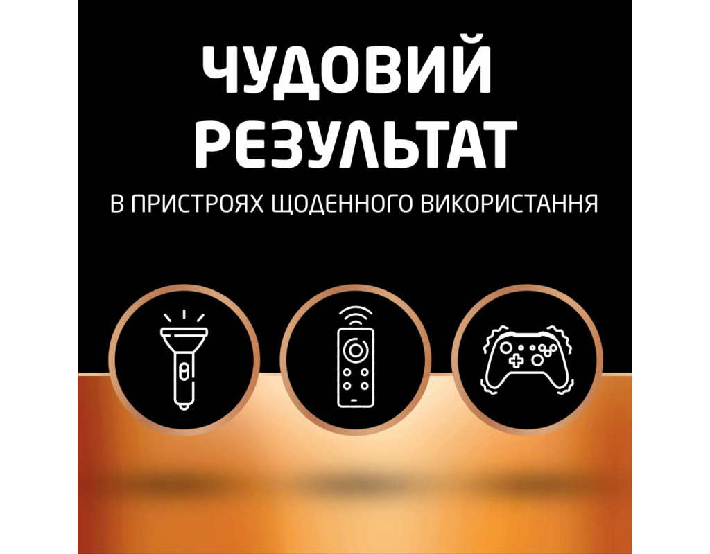 Duracell пропонує широкий асортимент батарейок, які можуть бути використані в електронних пристроях, що вимагають надійного забезпечення енергією. Батарейки Duracell АА – це багатоцільові лужні батарейки, ідеальні для надійного живлення енергією пристроїв повсякденного використання, які потребують додаткової енергії. Лужні батарейки Duracell працюють до 15 разів довше * (* Порівняно з провідними цинковими батарейками AA в тесті цифрових фотоапаратів із високим рівнем споживання енергії IEC AA 2021 (www.iec.ch). Результати можуть відрізнятися залежно від пристрою та способу використання) і доступні в розмірах AA, AAA, C, D і 9V. Технологія Duralock зберігає батарейки Duracell, які не використовувались, готовими до використання і зарядженими до 10 років при зберіганні в нормальних умовах. Ці батарейки дозволяють Вам вільно насолоджуватися використанням ваших приладів, даючи Вам продукт, на який ви можете покластися. Батарейки Duracell найкраще використовувати, коли ви шукаєте надійне джерело енергії тривалої дії для Ваших повсякденних пристроїв, таких як моторизовані іграшки, ліхтарики, портативні ігрові консолі, пульти дистанційного керування тощо. У 1969 році продукти Duracell були частиною місії Apollo 11, що зробило їх першими батарейками на Місяці. |