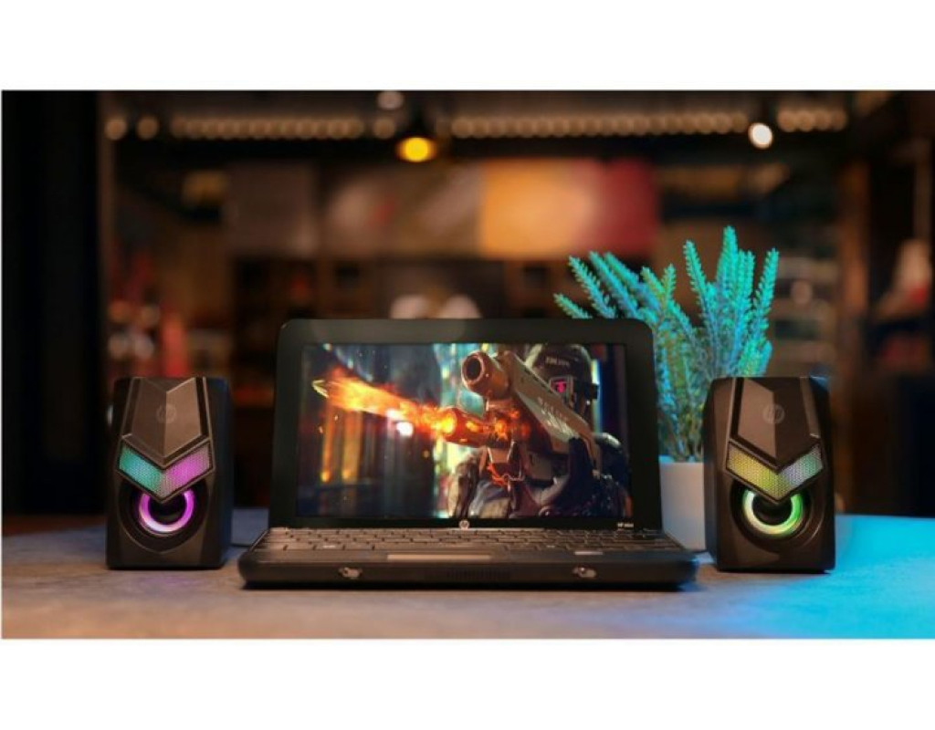Високоякісні стереодинаміки HP забезпечують чіткий і чистий звук. Вони живляться від USB і не вимагають зовнішнього джерела живлення. З підсвіткою RGB. Характеристики
