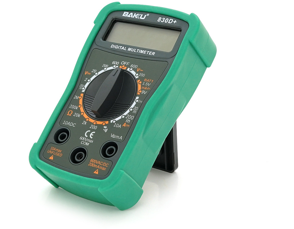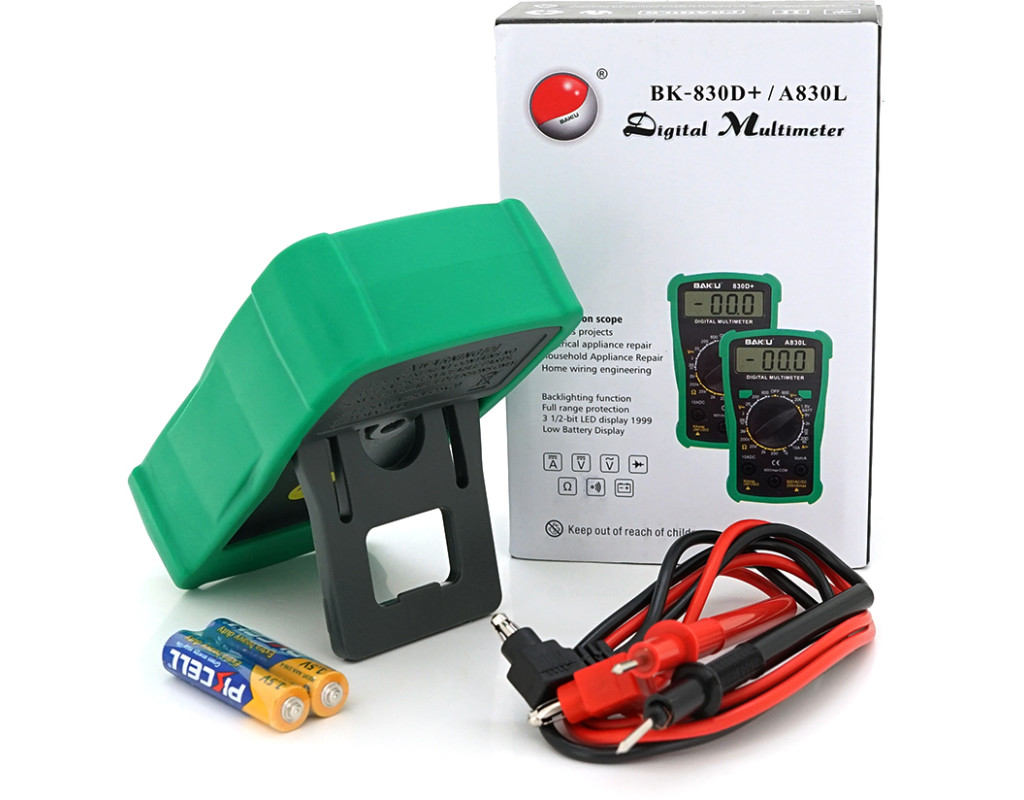 | Технічні характеристики Вимірювання: V, A, R Постійна напруга: до 600 В; Змінна напруга: до 600 В; Постійний струм: до 10 А; Опір: до 2 МОм; Звукове продзвонювання електричного кола: + Діодний тест: + Тест транзисторів: - Тестування батарей: + Утримання показань (HOLD): - Підсвічування дисплея: - Індикація розряду батареї: + Автовідключення: - Розрядність дисплея: 1999; Кількість гнізд: 3; Робоча температура: 0-40°С, вологість менша за 80%; Вес: 140 г. Комплектація прилад; щупи; Батарея 9 У тип Крона (може бути вже встановлена); Інструкція з експлуатації; Фірмова картонна упаковка |