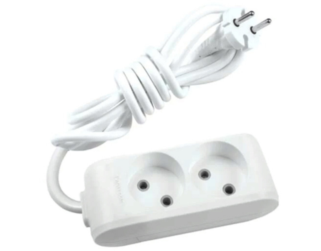 Кількість розеток - 2, євророзетка без заземлення (Тип С), Довжина кабелю - 2 м, Захист - від дітей, Сумарна потужність підключеного навантаження - ≤ 3500 Вт, Колір - сірий