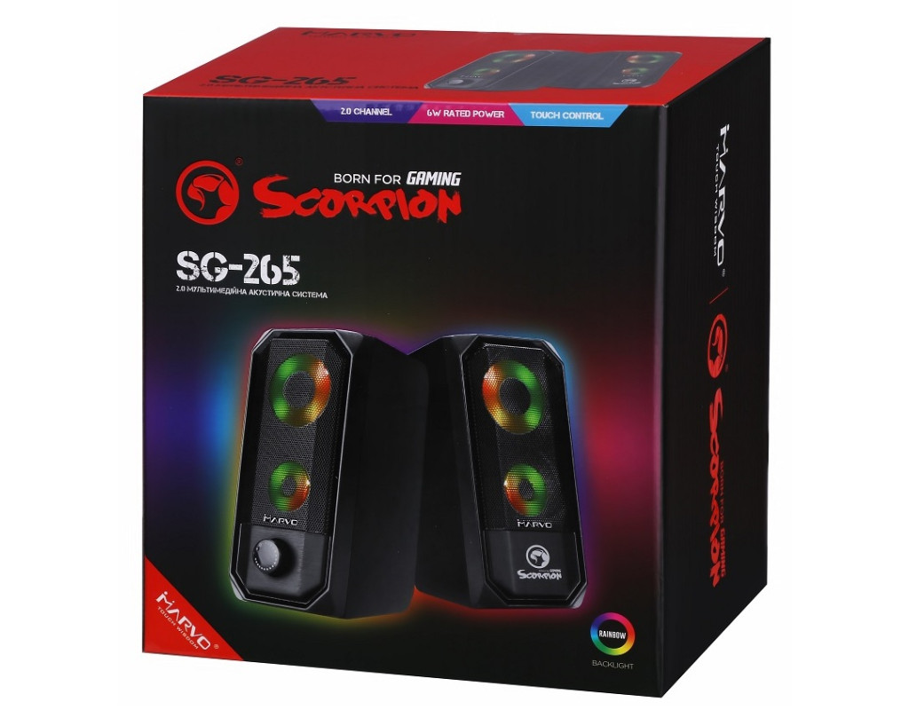 | Акустична система Marvo SG-265 Multi-LED USB Black — це ідеальний вибір для тих, хто цінує високу якість звуку та стильний дизайн. Ці колонки для комп'ютера з потужністю 6 Вт гарантують чисте і потужне звучання, яке додасть нових барв вашій улюбленій музиці, фільмам та іграм. Завдяки дротовому підключенню через роз'єм mini Jack 3.5 мм і USB, ви отримуєте стабільну передачу аудіосигналу без втрат якості, а живлення від USB забезпечує зручність використання. Marvo SG-265 відрізняється своїм оригінальним дизайном з Multi-LED підсвічуванням. Вбудований сенсор дозволяє швидко змінювати світлові схеми під ваш настрій, а тривале натискання на сенсор дає можливість регулювати яскравість підсвічування. Це створює чудову атмосферу і відчуття зануреності, що робить ці поличні колонки незамінними в будь-якій геймерській зоні або на робочому столі. Корпус колонок виготовлений з якісного пластику, що додає міцності та легкості. Для максимальної зручності тут є регулятор гучності на дроті, що дозволяє швидко налаштувати звук без зайвих клопотів. Основні переваги цієї акустичної системи — це бездоганне звучання, могутні баси та унікальне підсвічування Rainbow, яке робить Marvo SG-265 не лише функціональним, але й стильним доповненням до вашого простору. Використовуйте ці колонки з ПК або ноутбуками, щоб насолодитися кожною нотою та підкреслити особливу атмосферу вашого дому чи офісу. |