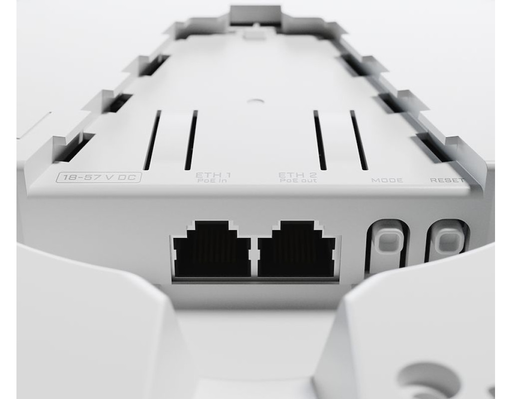 Незважаючи на те, що точка доступу підтримує режим ретранслятора, вона також містить два порти Ethernet, які дають Вам можливість розширити Вашу мережу надійним дротовим підключенням, і навіть якщо потрібно живлення PoE, оскільки cAP ac підтримує 802.3af PoE input (вхід) на першому порту і passive PoE output (вихід) (до 57В) на другому порту. Тому він може підключати і живити RouterBOARD і інші пристрої, такі як IP-камери. |