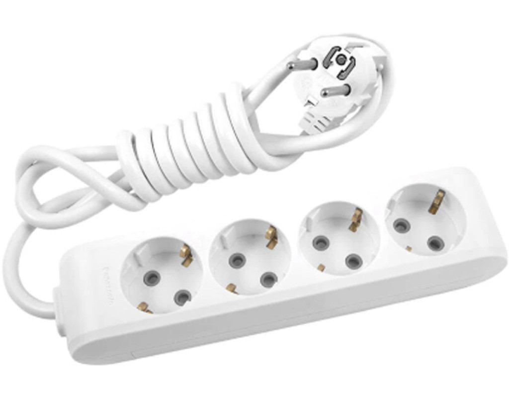 Кількість розеток - 4, євророзетка із заземленням (Тип F), Довжина кабелю - 2 м, заземлюючий контакт, Захист - IP40, Сумарна потужність підключеного навантаження - ≤ 3500 Вт, Колір - сірий