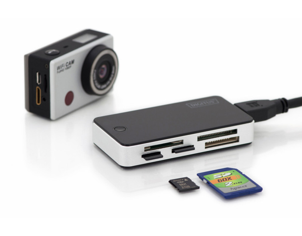 | Найшвидший і простий спосіб перенесення фотографій з цифрової камери на комп'ютер. Універсальний пристрій зчитування карт DIGITUS USB 3.0 дозволяє максимально швидко перенести дані на персональний комп'ютер або комп'ютер Mac. Можна використовувати будь-які традиційні карти пам'яті. |