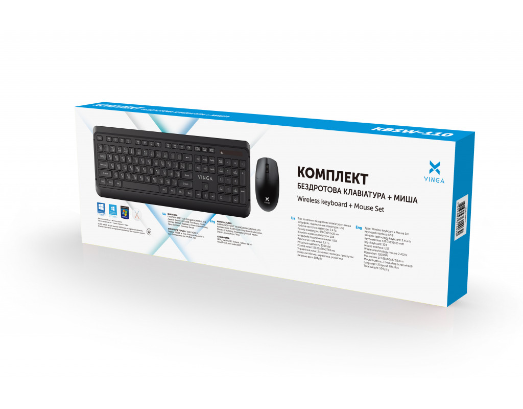 Тип - провідний, бездротовий, інтерфейс підключення - USB, USB адаптер 2.4 ГГц, формат клавіатури - повнорозмірна, тип сенсора миші - оптичний, роздільна здатність (max) - 1200 dpi, Колір - чорний