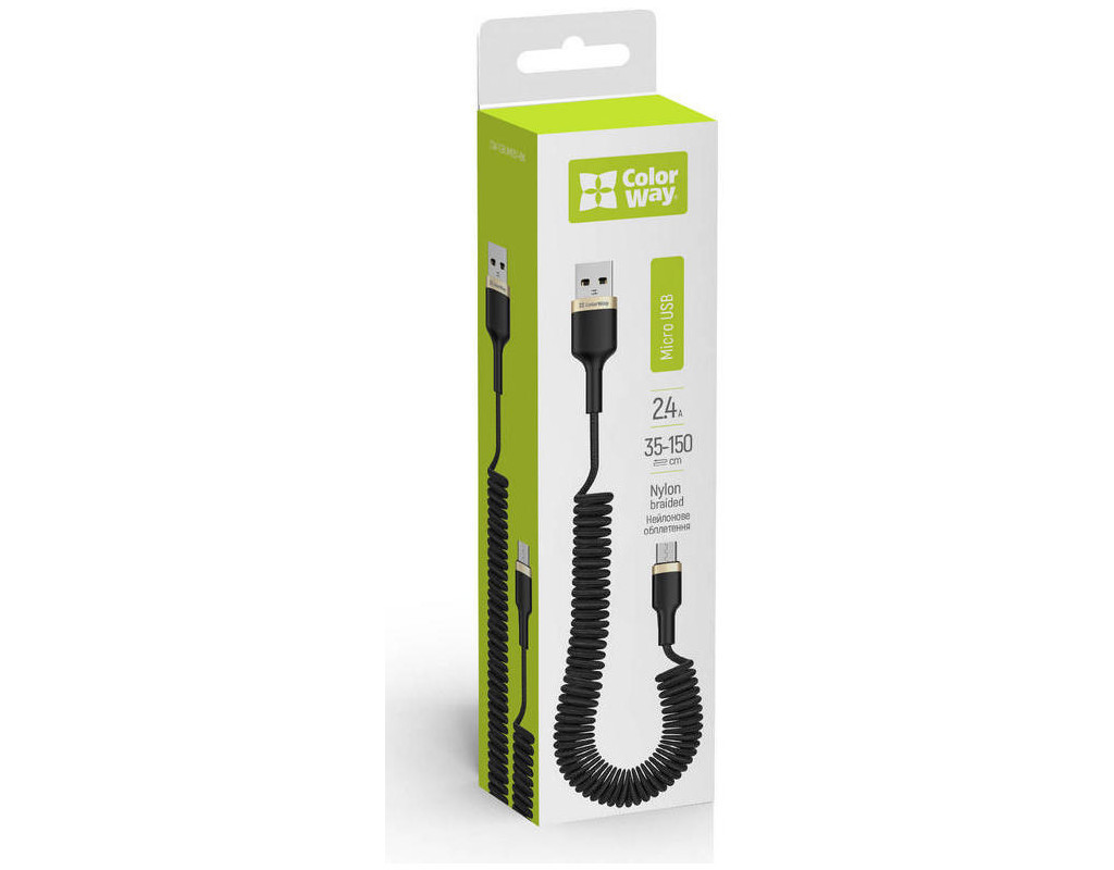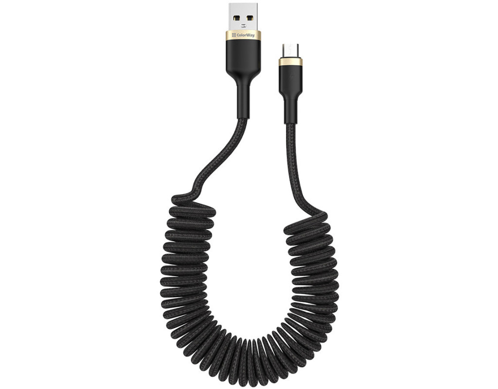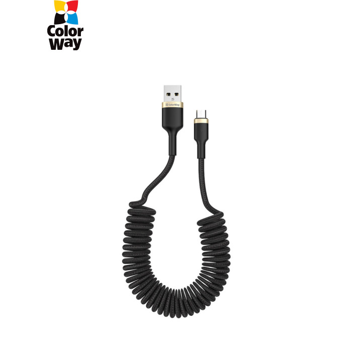 Дата кабель USB 2.0 AM to Micro 5P 1.0m spiral black ColorWay (CW-CBUM051-BK)