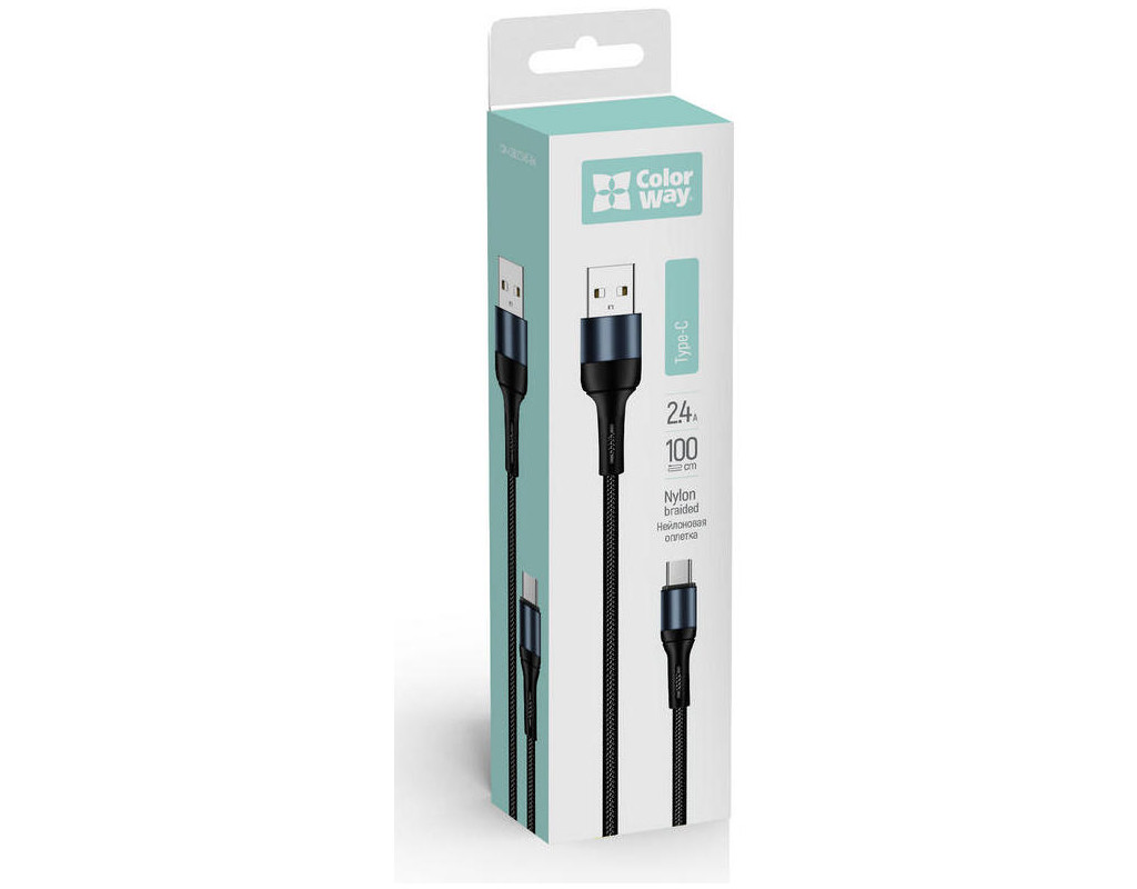 Дата кабель USB 2.0 AM to USB-C 1.0m nylon black ColorWay (CW-CBUC045-BK)