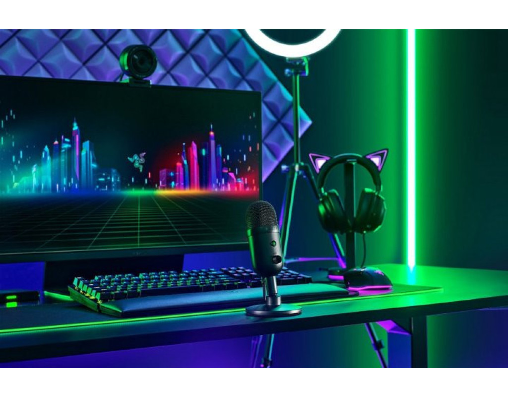 Чіткість, яка має значення Виділяйтеся серед моря стримерів із чіткістю, що проникає крізь шум. Будьте почуті з Razer Seiren V2 X — конденсаторним USB-мікрофоном, що ідеально підходить для будь-якого налаштування потокового передання, обладнаний усіма технологіями, необхідними для того, щоб ваш голос дійсно ожив. Конденсаторний мікрофон 25 мм Потужна чутливість мікрофона здатна вловити ваш голос із високим ступенем точності, особливо на високих частотах, гарантуючи, що ви звучатимете для інших так само, начебто ви сидите поряд. Суперкардіоїдний Наш конденсаторний USB-мікрофон призначений для придушення шуму ззаду та з боків, тому він може чітко вловлювати ваш голос, не вловлюючи фонових звуків, як-от набір тексту або клацання миші. Обмежувач аналогового посилення Razer Seiren V2 X може автоматично регулювати посилення мікрофона, щоб запобігти зрізанню та стрибкам звуку, тому вам не потрібно турбуватися про спотворення голосу, коли під час потокового передання все стає занадто голосно та захопливо. Регулятори гучності, посилення та вимкнення Зручно налаштуйте основні параметри звуку завдяки набору кнопок швидкого доступу на самому мікрофоні. Вбудований амортизатор Захищає вуха вашої аудиторії, поглинаючи вібрації від стукоту та ударів. Моніторинг мікрофону Під'єднайте гарнітуру до роз'єма 3,5 мм для мікрофона, щоб почути свою промову. Так ви зможете легко стежити за рівнями мікрофона та легко спілкуватися кількома голосовими каналами. Plug and Play Просто під'єднайте конденсаторний мікрофон до комп'ютера через кабель USB Type-C — Type-A, щоб почати потокове передавання. Мікшування звуку через Razer Synapse Маючи можливість регулювати гучність того, що ви чуєте, та того, що чує аудиторія, окремо, ви можете зосередитись на доставленні свого найкращого контенту, забувши про клопоти. Просто призначте рівень звуку на відповідні виходи на потужній платформі. |