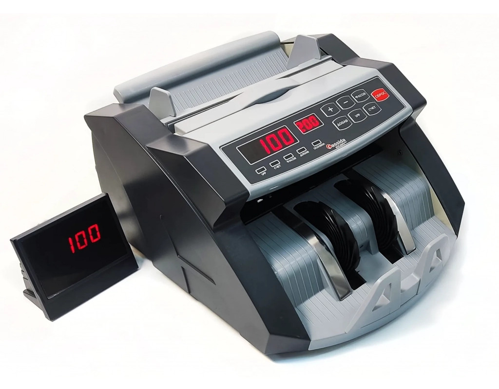 Лічильник купюр Cassida Kolibri стане компактним рішенням для обробки малих та середніх обсягів готівки. Він розроблений американським брендом, що спеціалізується на створенні лічильної техніки середнього цінового діапазону Апарат безпомилково проводить перерахунок, фасування, ультрафіолетову детекцію справжності та запобігає помилкам перерахунку. Конструкція приладу складається з приймальної та завантажувальної кишень, розрахованих на 100 та 100 банкнот відповідно, LED дисплея зі світлодіодною індикацією червоного світла (4 символи для відображення кількості, та 3 символи для відображення фасування) Призначення: