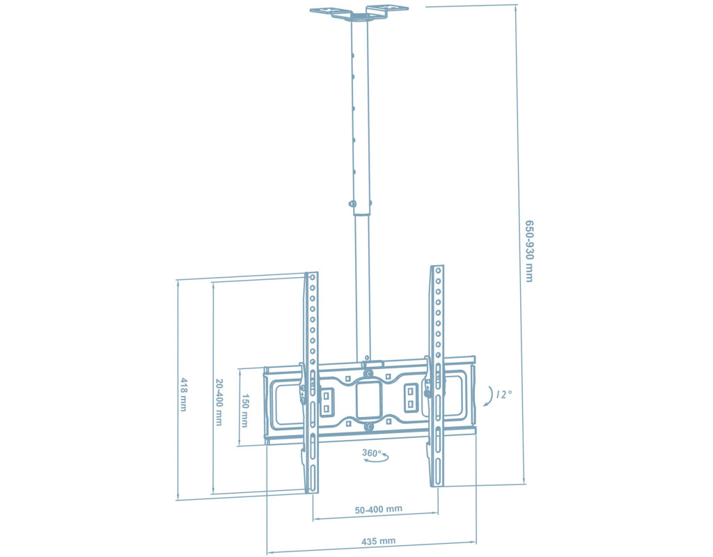 | Поворот: 360 град Відступ від стелі: 650-930 мм Колір чорний Рівень для точної установки |