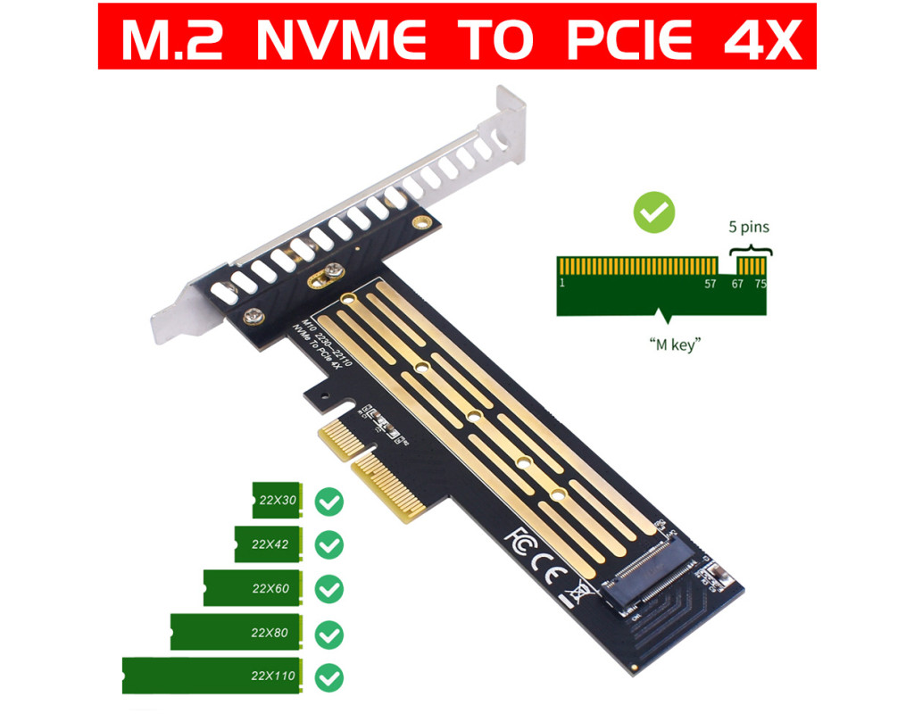 Плата розширення Dynamode "PCI-Ex4- M.2 M-key" призначена для встановлення твердотільних накопичувачів SSD NVMe (PCIe) M-Key у стандартний слот материнської плати: PCI-E 4x / PCI-E 8x / PCI-E 16x. Вона підтримує 5 типорозмірів M.2 NVMe (PCIe) M-key SSD: 2230, 2242, 2260, 2280, 22110, такі, наприклад, як Samsung XP941/SM951/950 Pro, Plextor M6e Series, Intel S600 тощо. На текстоліті адаптера є LED-індикатор. Характеристики: - Інтерфейс пристроїв, що підключаються до плати розширення: M-Key M.2 NVMe (PCIe). Зверніть увагу, що плата не підтримує SSD M.2 NGFF з SATA-протоколом!!! - Інтерфейс підключення до материнської плати: PCI-E 3.0 4x GEN3, сумісний зі слотами PCI-E 4x, PCI-E 8x, PCI-E 16x. Зворотно сумісний із протоколом PCI Express V2.0 і PCI Express V1.0, але якщо ви задієте слоти версії 2.0/1.0, то в цьому разі швидкість SSD буде помітно нижчою, ніж у PCI Express V3.0. - Не потребує зовнішнього джерела живлення. - Встановлення адаптера просте, не вимагає драйверів або додаткового програмного забезпечення, оскільки він прозорий для системи. - Підтримка ОС: Windows, Linux, Mac OS. - Накопичувач M.2 NVMe (PCIe) SSD не входить до комплекту постачання цього адаптера. Комплектація: - 1) Плата розширення M.2 NVMe M-key SSD to PCI-E 3.0 4x. - 2) Повнопрофільна планка. - 3) Набір гвинтиків для кріплення SSD-накопичувачів і повнопрофільної планки. - 4) Викрутка. |
