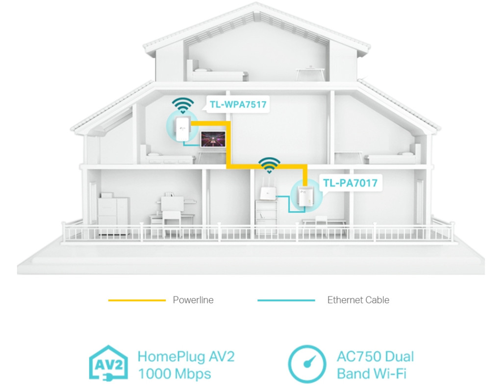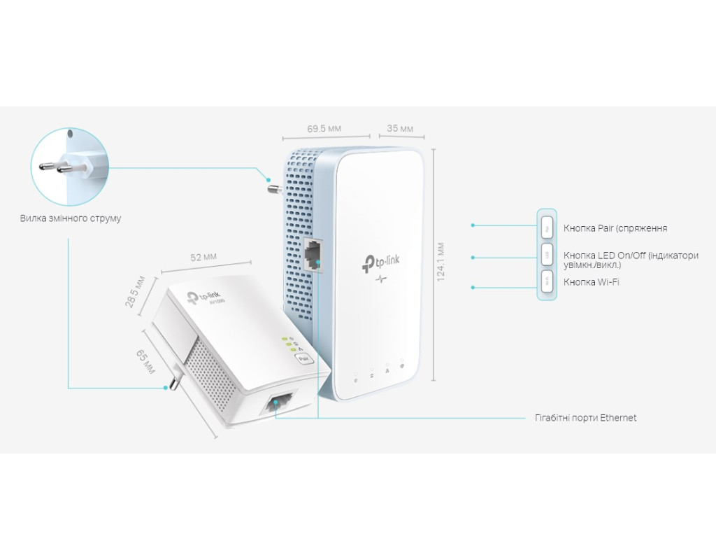 AV1000 Комплект гігабітних Wi-Fi Powerline адаптерів - Стандарт HomePlug AV2 — передача даних зі швидкістю до 1000 Мбіт/с на відстань до 300 метрів