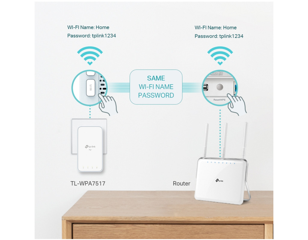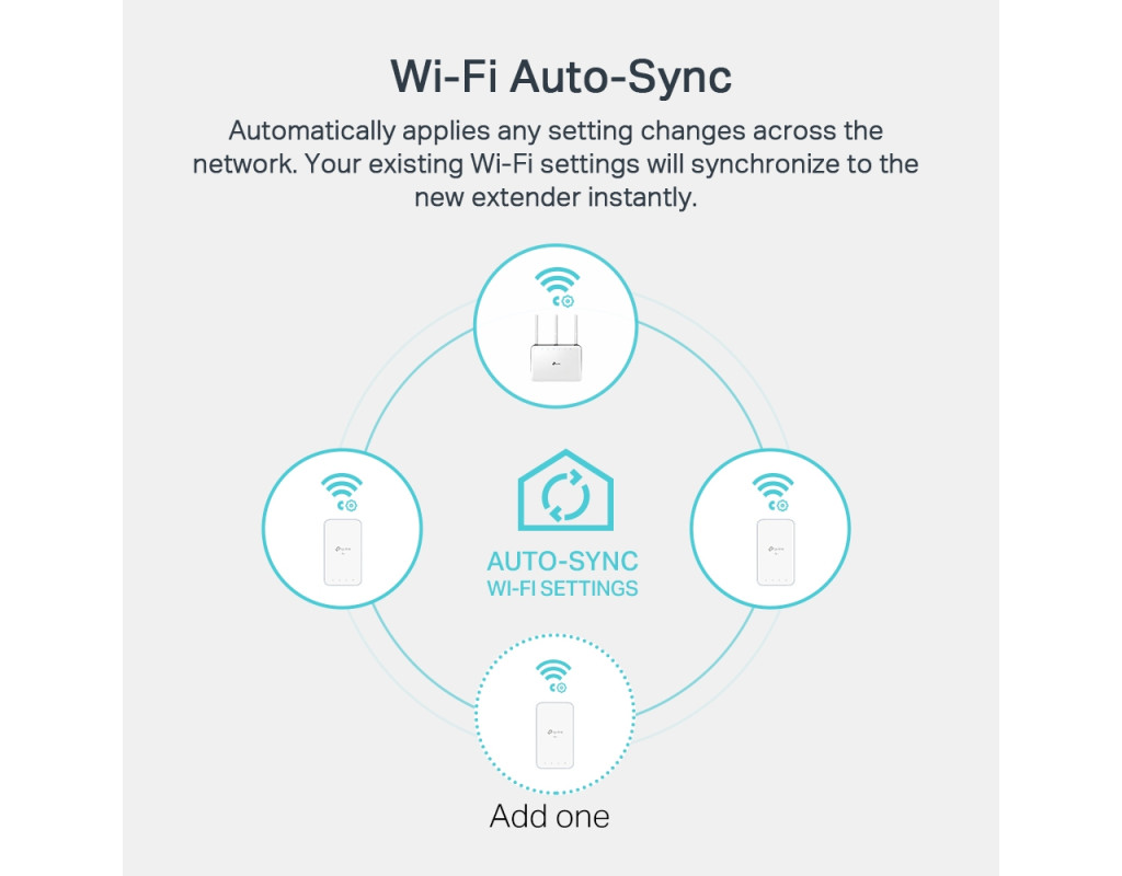 - Автосинхронізація налаштувань Wi-Fi — просте копіювання Wi‑Fi налаштувань роутера та їх застосування до всіх пристроїв у мережі Powerline за допомогою функцій Wi‑Fi Clone та Wi‑Fi Move