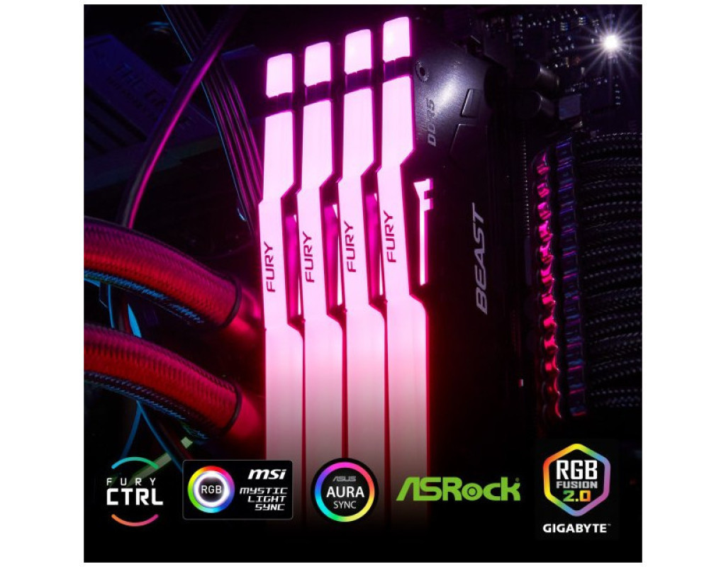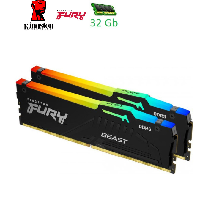 Модуль пам'яті для комп'ютера DDR5 32GB (2x16GB) 5200 MHz Beast RGB XMP Kingston Fury (ex.HyperX) (KF552C40BBAK2-32)