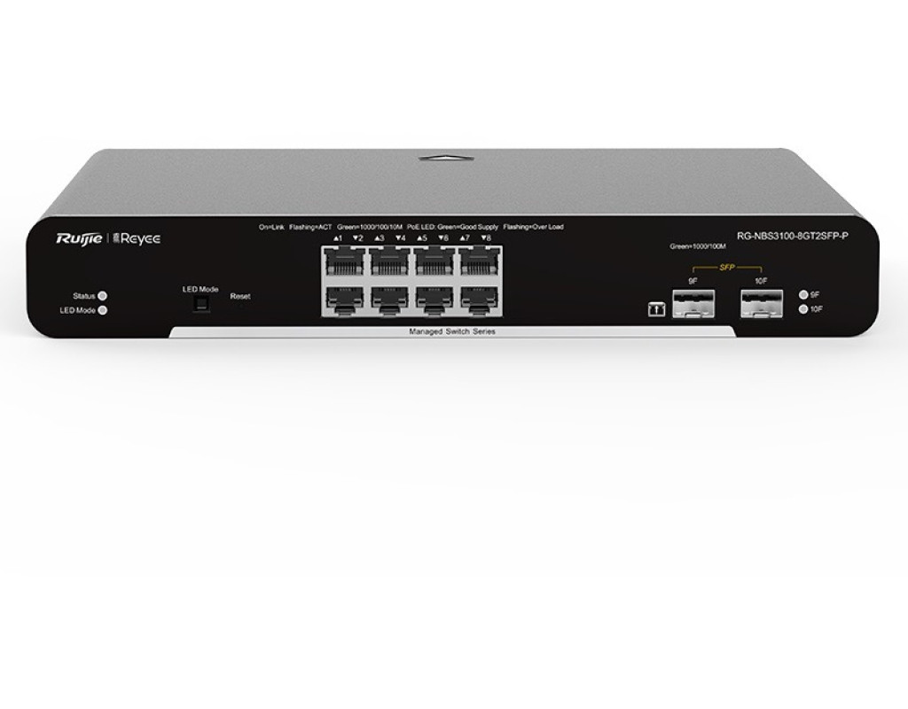 | Серія керованих комутаторів Ruijie Real-easy RG-NBS3100 складається з 4 моделей комутаторів, розроблених для клієнтів малого та середнього бізнесу, щоб задовольнити їх різні мережеві потреби, включаючи базовий поділ VLAN та розширені функції безпеки, такі як ACL. Моделі із суфіксом -P підтримують PoE, що відповідає вимогам PoE для бездротових точок доступу, цифрових камер та інших пристроїв у різних сценаріях. |