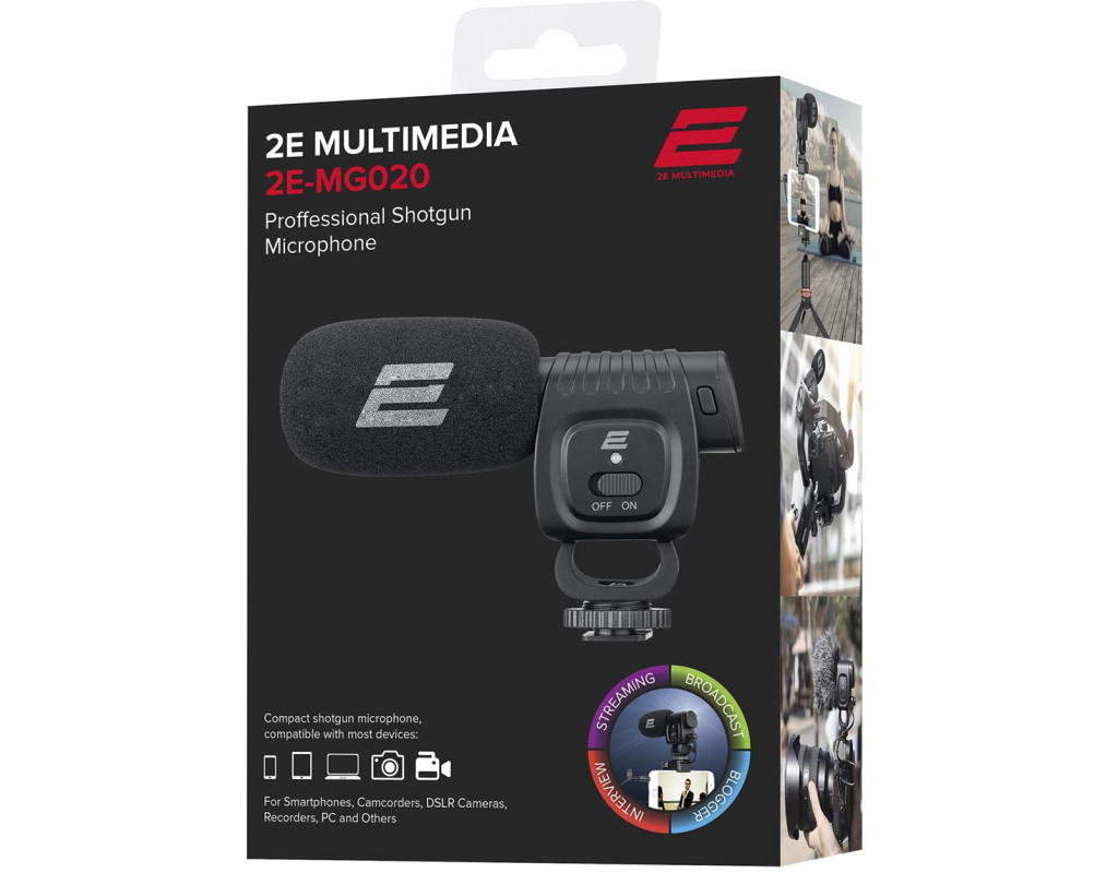 | Професійний камерний мікрофон з вітровим захистом, джерелом живлення для роботи з функцією вбудованої звукової карти та пасивним стабілізатором. Сумісність зі смартфонами, фотокамерами, відеокамерами, ПК та більшістю інших пристроїв запису звуку та відео.