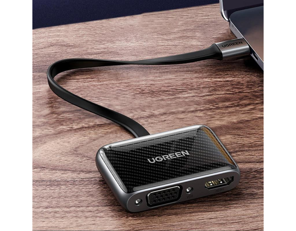 | Перехідник Ugreen USB Type C to HDMI+VGA CM303 призначений для додавання USB Type C пристроям двох відеовиходів. Він надає можливість одночасно користуватись роз’ємами HDMI та VGA. У вашому розпорядженні буде два режими відображення відео - дублювання вмісту основного екрану та його розширення.