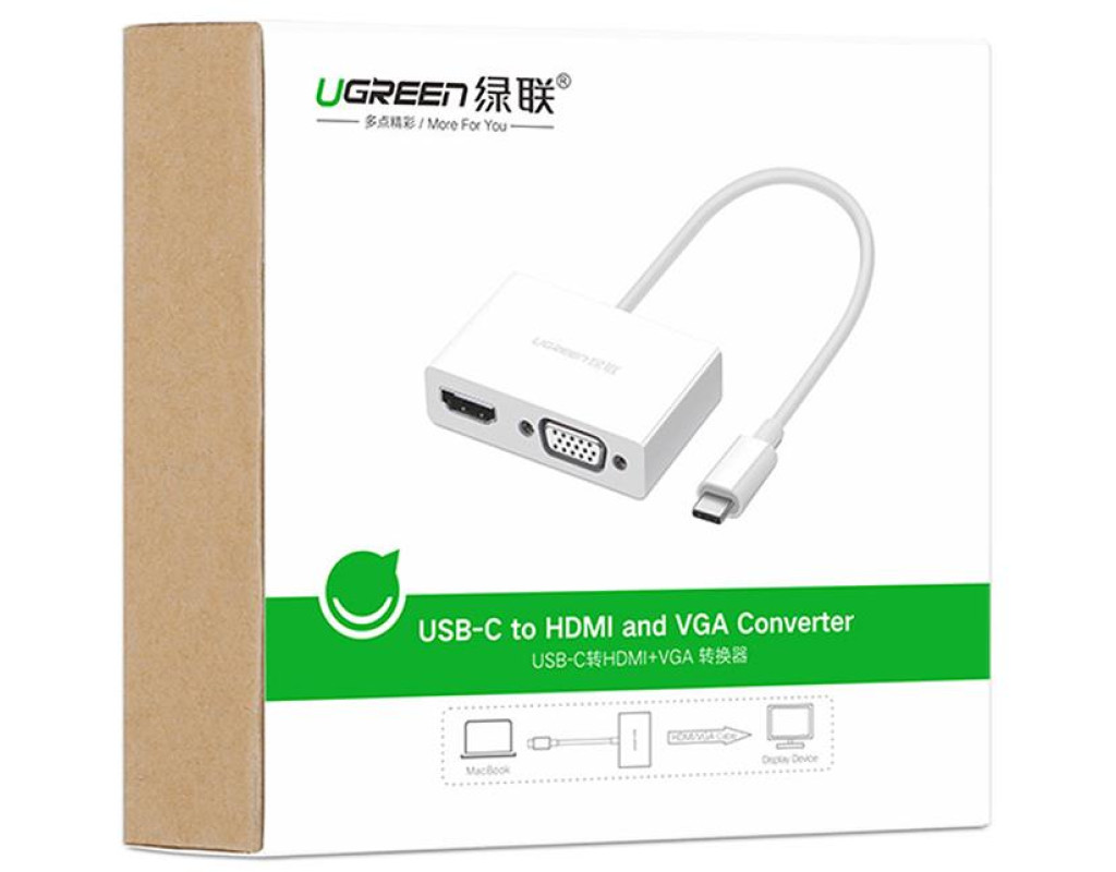 | Перехідник Ugreen USB Type C to HDMI + VGA ММ123 додає USB Type C пристроям два відеовиходи. Він дозволяє одночасно користуватись двома роз’ємами для передачі відео – HDMI та VGA – підключайте до свого ПК два додаткових дисплеї та дублюйте вміст основного екрану з роздільною здатністю 1920x1080 при 60 Гц.