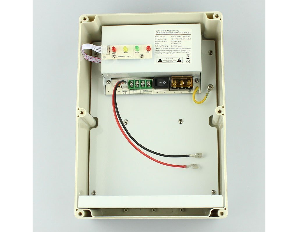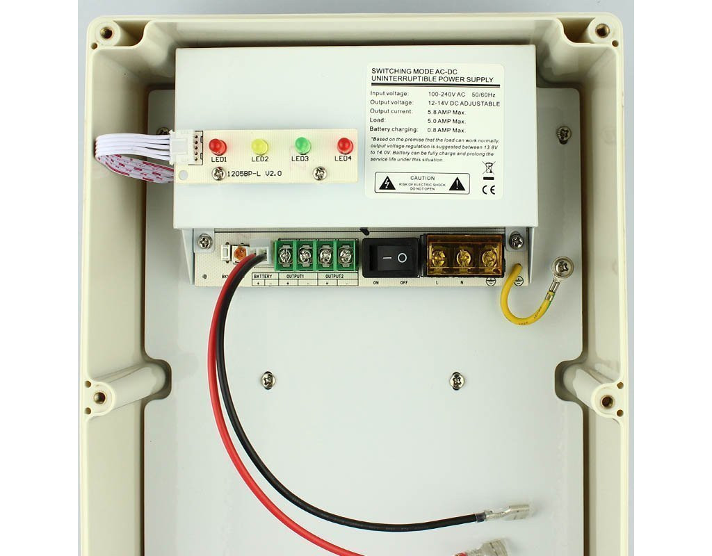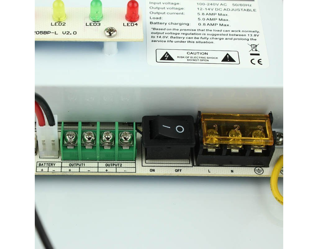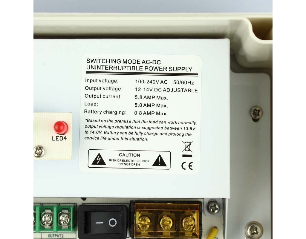 Тип - клемний, Вхідна напруга - 190-240В, Вихідна напруга - 12 - 14 В, Вихідний струм - 5 А, клемна колодка, Формат перетворення - імпульсний, захист від перевантаження, захист від короткого замикання, Матеріал корпусу - пластик