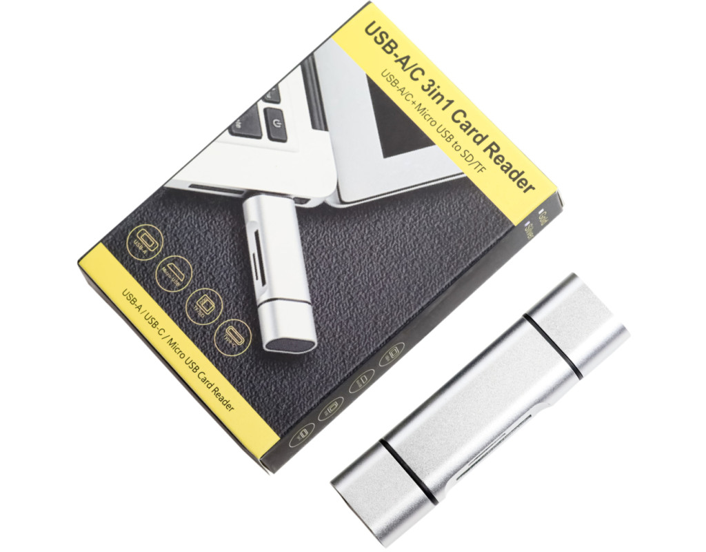 Багатофункціональний адаптер XOKO AC-440 для ноутбуків із портом Type-C; Компактний, стильний дизайн, що ідеально поєднується з продукцією компанії Apple; Конектори та корпус адаптера виготовлені з анодованого алюмінію, що захищає від електромагнітних перешкод; Адаптер виконує функцію кард-рідера для SD-карти та microSD; Передача даних за допомогою USB 3.0 із швидкістю до 5 Гб/с. Швидке та безпроблемне підключення без драйверів та живлення; |