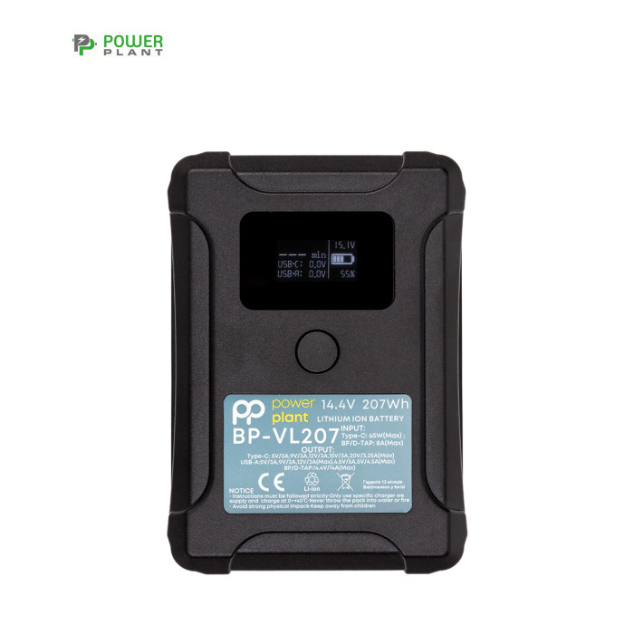Змінний акумулятор для Sony BP-VL207 14000mAh . Він також може використовуватися як Powerbank для заряджання широкого спектра пристроїв із PD 65W, швидкою зарядкою QC3.0, через роз'єми USB Type-C і USB Type-A (телефони, ноутбуки, планшети, електронні пристрої тощо). Має два порти D-TAP. Особливості: Підтримує протоколи: PD3.0, QC2.0, QC3.0, AFC, FCP, SCP, DCP, Apple-2.4A. Зі світлодіодним екраном, кнопкою ввімкнення/вимкнення, захистом з'єднання. Інтелектуальна система управління автоматично підлаштовує напругу або струм, роблячи роботу пристрою більш стабільною. Відсутній "ефект пам'яті". Низький рівень саморозряду. Тривалий термін служби акумулятора. Характеристики: