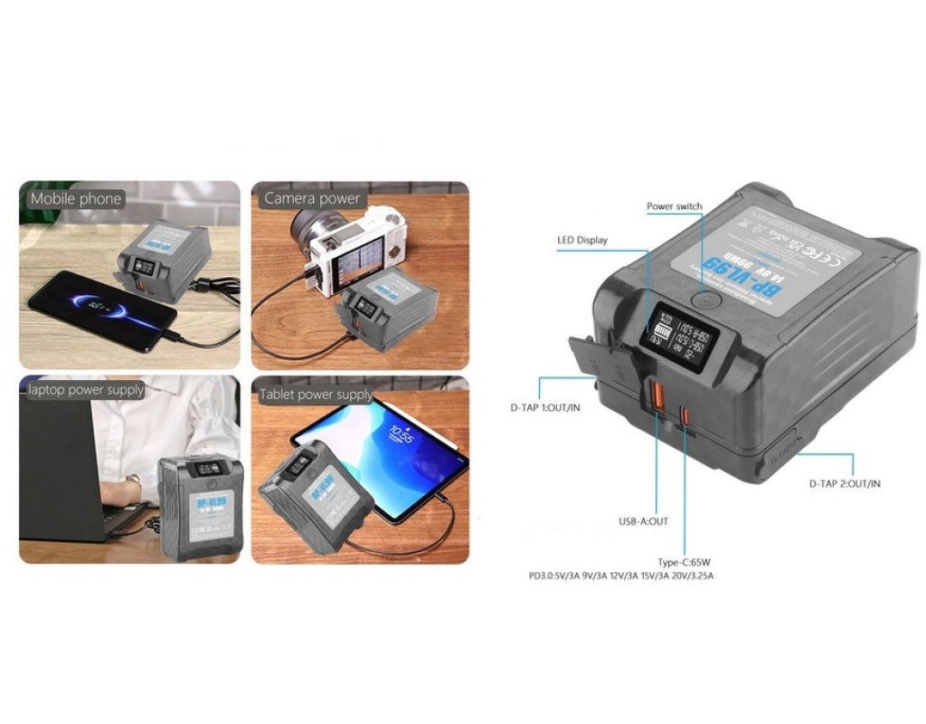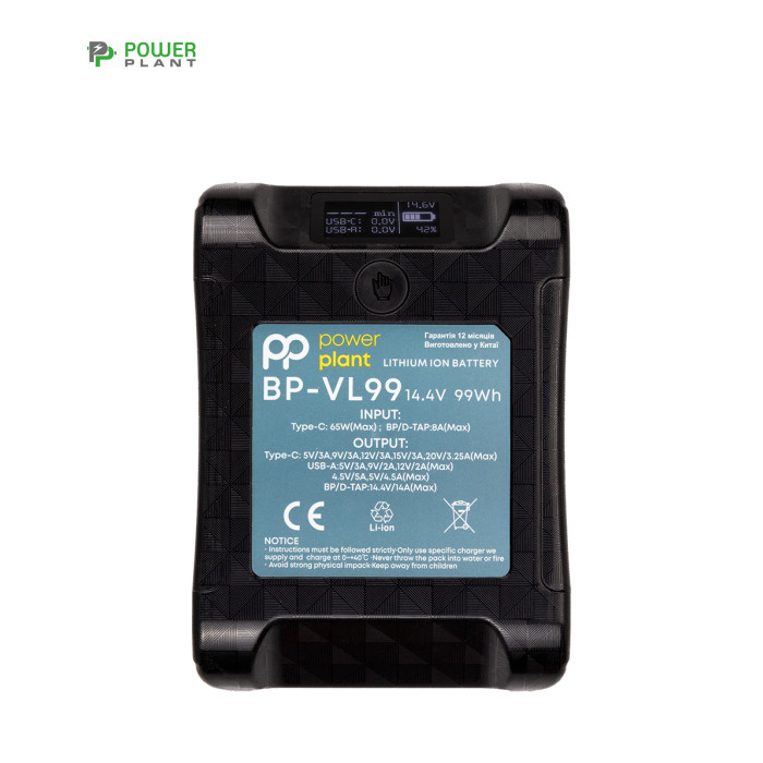 Змінний акумулятор для Sony BP-VL99 7000mAh Він також може використовуватися як Power bank для заряджання широкого спектра пристроїв із PD 65W, швидкою зарядкою QC3.0, через роз'єми USB Type-C і USB Type-A (телефони, ноутбуки, планшети, електронні пристрої тощо). Має два порти D-TAP. Особливості: Підтримує протоколи: PD3.0, QC2.0, QC3.0, AFC, FCP, SCP, DCP, Apple-2.4A. Має світлодіодний екран, кнопку ввімкнення/вимкнення, захист з'єднання. Відсутній "ефект пам'яті". Низька швидкість саморозряду. Тривалий термін служби акумулятора. Характеристики: Ємність: 7000mAh. Тип акумулятора: Li-ion. Напруга: 14.4V. Потужність: 99Wh. Роз'єми: 1x USB Type-C, 1x USB Type-A, 2x D-TAP. Вхід USB Type-C: 5V/3A, 9V/3A, 12V/3A, 15V/3A, 20V/3.25A, max 65W. Вихід USB Type-C: 5V/3A, 9V/3A, 12V/3A, 15V/3A, 20V/3.25A PD3.0 65W; 5V/3A, 9V/2A, 12V/2A QC2.0/AFC/FCP; 6.5V/3A, 9V/2A, 12V/2A QC3.0. Вихід USB Type-A: 5V/3A, 9V/2A, 12V/2A, QC2.0/QC3.0; 4.5V/5A, 5V/4.5A SCP. Вхід BP/D-TAP1: DC 16.8V, max 8A. Вхід BP/D-TAP2: DC 16.8V, max 8A. Вихід BP/D-TAP1: 14.4V/14A. Вихід BP/D-TAP2: 14.4V/14A. Колір: чорний. Матеріал корпусу: PC (bulletproof PC shel). Розміри акумулятора: 70x100x50 мм. Вага: 538 г. Розмір в упаковці: 100x125x70 мм. Вага в упаковці: 645 г. Виробник: PowerPlant. Гарантія: 12 місяців. Акумулятор можна використовувати замість оригінального: Sony BP-L60A. Sony BP-IL75. Sony BP-L40A. Sony BP-800S. Sony BP-130L. Sony BP-GL95. Sony BP-GL65. Sony BP-L60S. Sony BP-140A. Sony BP-L90A. Sony BP-FL75. Sony BP-L80S. Підходить до моделей: Sony HDW-800P. Sony PDW-850. Sony DSR-250P. Sony DSR-600P. Sony DSR-650P. Примітки: список сумісних моделей може бути неповним. У разі сумнівів завжди звертайтеся за порадою до консультанта. Важлива інформація! Відпрацьовані батареї та акумулятори необхідно викидати в спеціальні контейнери, марковані знаком збору батарей і/або акумуляторів. |