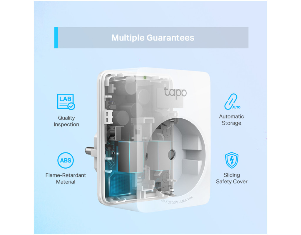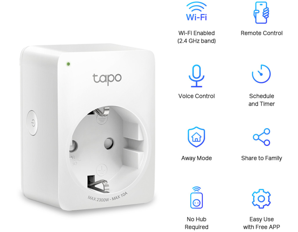 | Віддалене управління Використовуйте мобільний додаток Tapo, щоб миттєво вмикати або вимикати підключені пристрої де б ви не знаходилися. Зробіть ваше життя простішим і безпечнішим. Функції розкладу і таймераВи можете налаштовувати розклад роботи і таймери на цілий тиждень. Всі підключені пристрої будуть автоматично активуватися і відключатися в заданий час. Багато функцій в компактному корпусіЗавдяки невеликому розміру Tapo P100 не блокує сусідні розетки. Захисник вашого будинкуФункція «Не вдома» створює видимість того, що вдома хтось є, періодично вмикаючи та вимикаючи підключені пристрої (наприклад, лампу). Забезпечте додатковий захист від зловмисників, перебуваючи в поїздці. Сімейний доступВи можете ділитися правами доступу і управління з членами родини, економлячи час і спрощуючи використання пристрою особливо для людей похилого віку. Гарантії безпеки