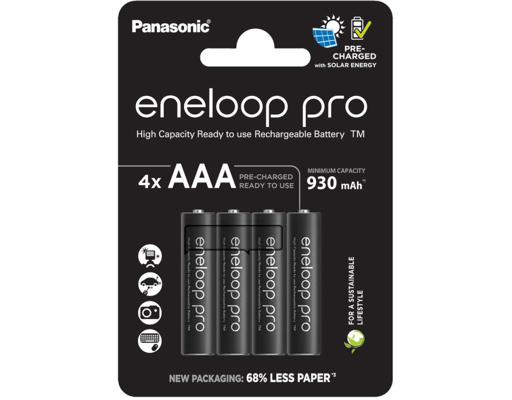 Акумулятор Panasonic Eneloop Pro BK-4HCDE/4BE AAA 930 mAh - ідеальний вибір тих, кому потрібні надійні батарейки для живлення пристроїв із великим струмоспоживанням. Це можуть бути ліхтарі, бездротові мишки та клавіатури, ігрові контролери, радіокеровані іграшки, а також ряд побутових приладів. Всі ці та багато інших пристроїв із живленням від батарей Eneloop Pro отримують розширену продуктивність і буквально «нове життя». Нікель-металогідридні акумулятори Eneloop Pro розроблені спеціально для роботи в екстремальних умовах, де потрібна висока продуктивність, незважаючи ні на що. У тому числі, вони можуть працювати навіть за мінусових температур (до -20° С). Акумулятори Eneloop Pro здатні зберігати до 85% своєї потужності навіть після цілого року зберігання. Вони вигідно відрізняються від звичайних лужних батарей, які ми використовуємо тільки один раз, а потім викидаємо, що марнотратно і шкідливо для навколишнього середовища. Eneloop Pro можна заряджати до 500 разів. Перевага цих акумуляторів - вони постачаються після попередньої підзарядки і можуть бути використані відразу ж, як ви дістанете їх з упаковки.