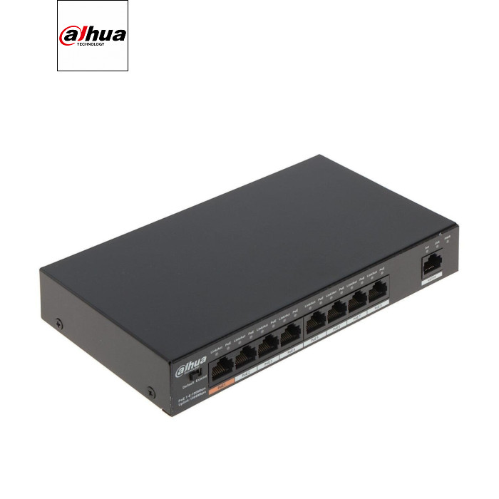 | DH-PFS3009-8ET1GT-96 8-портовий PoE комутатор з підтримкою режиму роботи CCTV (передача PoE на лінії до 250 метрів). Забезпечує швидкість передачі по портам в стандартному режимі 100 Мбіт / с, в режимі CCTV 10 Мбіт / с. Перемикання режимів роботи здійснюється DIP перемикачем на лицьовій панелі пристрою. |