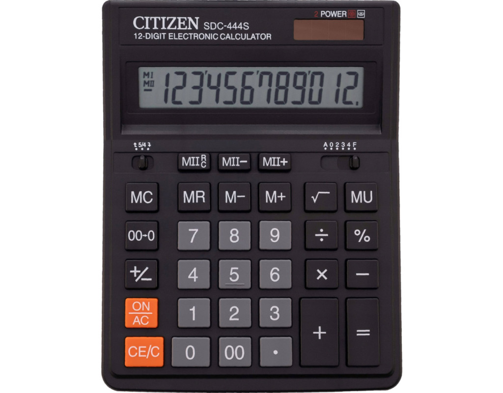 | Калькулятор Citizen SDC-444S (1244) допоможе легко зробити різні підрахунки, обчислити відсотки, підрахувати підсумкову суму. Передбачено автоматичне вимикання живлення. Особливості: дисплей: фіксований кутовий; тип пам'яті: дворівнева пам'ять; клавіші введення розрядів: клавіша "00"; живлення: елемент живлення і сонячна батарея. |