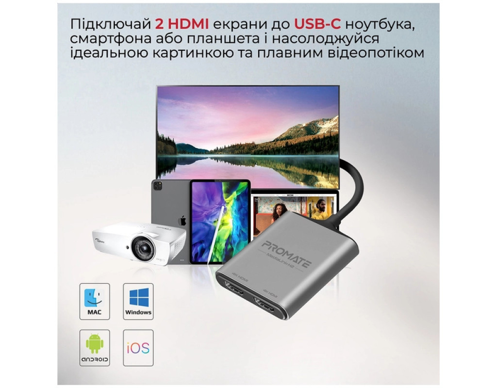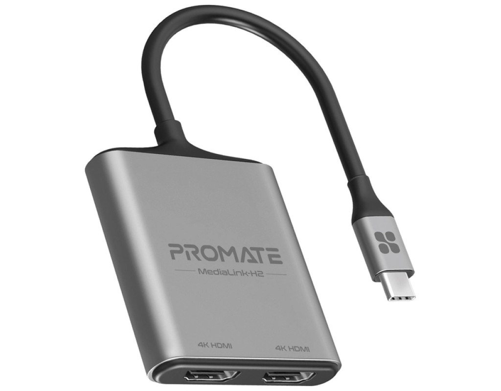 Перехідник USB-C to 2xHDMI 4K Promate (medialink-h2.grey)