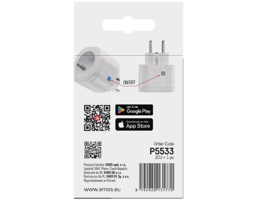 | Розумне керування електроприладамиХочете контролювати свої електроприлади навіть поза домом? Розумна розетка IP-3009S дозволяє керувати підключеними приладами з будь-якого місця за допомогою мобільного телефону або планшета. У додатку EMOS GoSmart ви можете дистанційно вмикати або вимикати вентилятор, електричне опалення та інші прилади. Забезпечте безпечну та економічну роботу вашого дому!Завдяки дистанційному керуванню, вимірюванню потужності, таймеру та автоматичному ввімкненню/вимкненню ви можете перетворити будь-який прилад на розумний пристрій.Автоматизуйте свій дімРозетка EMOS GoSmart IP-3009F дозволяє налаштувати роботу приладів у вашому домі. Ви можете керувати нею вручну або автоматично за допомогою мобільного пристрою.За допомогою таймера ви можете автоматизувати роботу приладів у певний час і день. Хочете, щоб ваші прилади ввімкнулися до того, як ви повернетеся додому? Не проблема! Функція зворотного відліку встановлює час автоматичного ввімкнення або вимкнення.Функція запланованого вимкнення дозволяє автоматично вимикати прилад, такий як очищувач повітря або кондиціонер, через певний проміжок часу.Контроль споживання енергіїЗа допомогою розумної розетки IP-3009S ви можете дистанційно перевіряти, чи вимкнули ви прилади, які використовуєте, а також контролювати загальне споживання підключених пристроїв і завдяки записаній історії в додатку перевіряти, скільки енергії було спожито за певний місяць.Маленький та практичнийЗавдяки невеликому розміру він не займає багато місця, ви можете керувати, наприклад, обігрівачем, освітленням або іншими побутовими приладами. Він оснащений чіткою індикацією стану, завдяки якій ви можете одразу дізнатися, чи він увімкнений, чи вимкнений. Також корисною є функція циркуляції для повторного вмикання пристрою через однакові проміжки часу та режим випадкового ввімкнення/вимкнення, який імітує активність під час вашої відсутності.Легко встановитиРозетка може надійно обслуговувати всі ваші електроприлади незалежно від їхнього споживання енергії завдяки споживаній потужності до 3680 Вт та силі струму 16 А. Просто підключіть розумну розетку IP-3009S до мережі, підключіть її до шлюзу ZigBee та з’єднайте з мобільним додатком EMOS GoSmart, доступним для Android та iOS.Інтеграція з EMOS GoSmart і TUYAСтворіть власний розумний дім за допомогою розумного EMOS GoSmart та інших пристроїв, сумісних з TUYA. Підключіть окремі пристрої, налаштуйте автоматизацію для їхніх дій та керуйте ними дистанційно за допомогою повністю локалізованого та інтуїтивно зрозумілого мобільного додатку.Дозвольте своєму дому піклуватися про себе самостійно та приділіть більше часу своїм близьким та інтересам. |