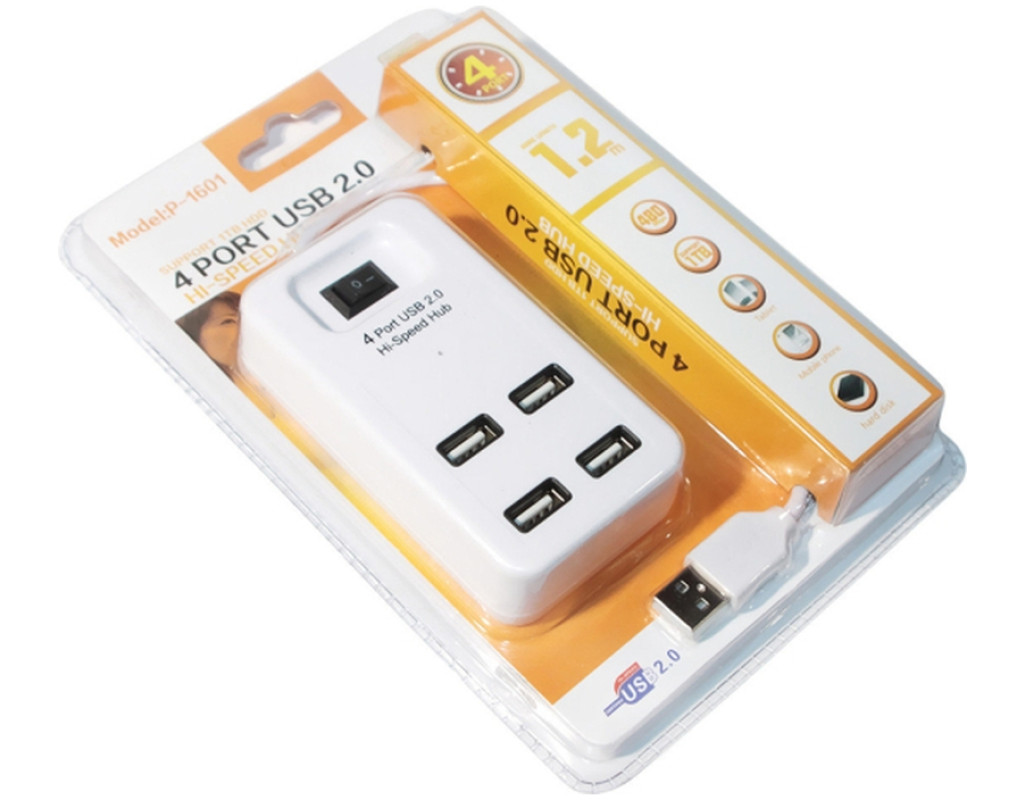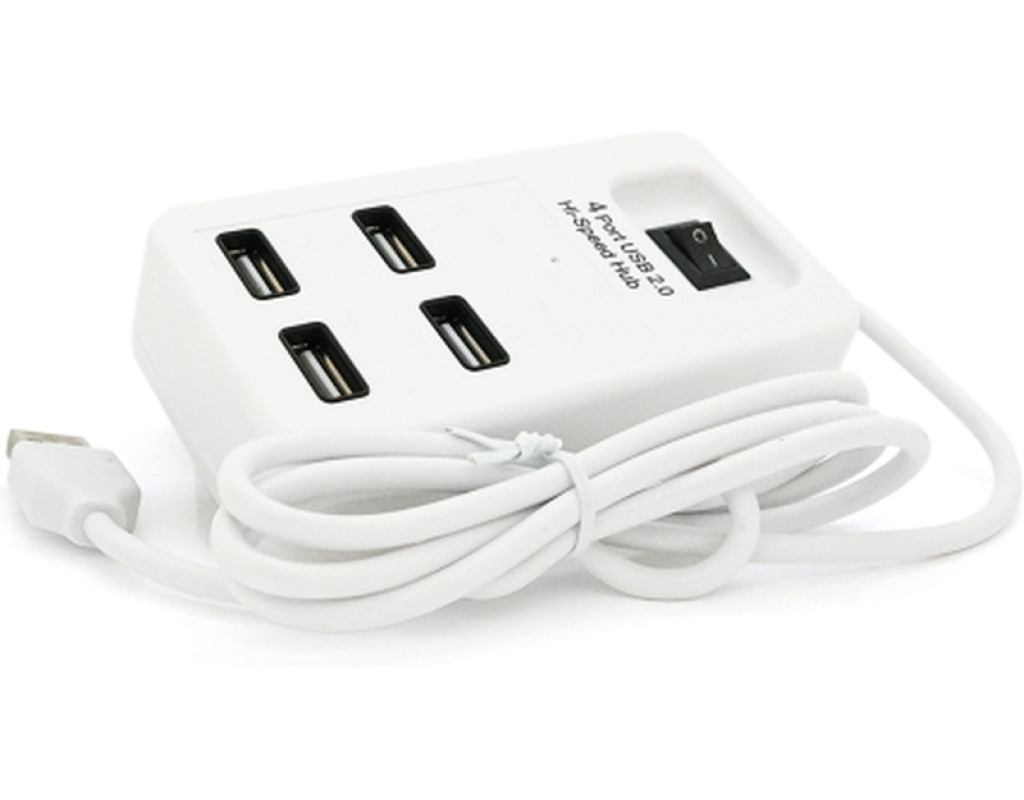 Компактний розгалужувач USB з чотирма портами і зручним вимикачем дозволяє легко керувати підключенням декількох пристроїв до комп`ютера. Пристрій виконаний у білому пластиковому корпусі та поставляється у блістерній упаковці.