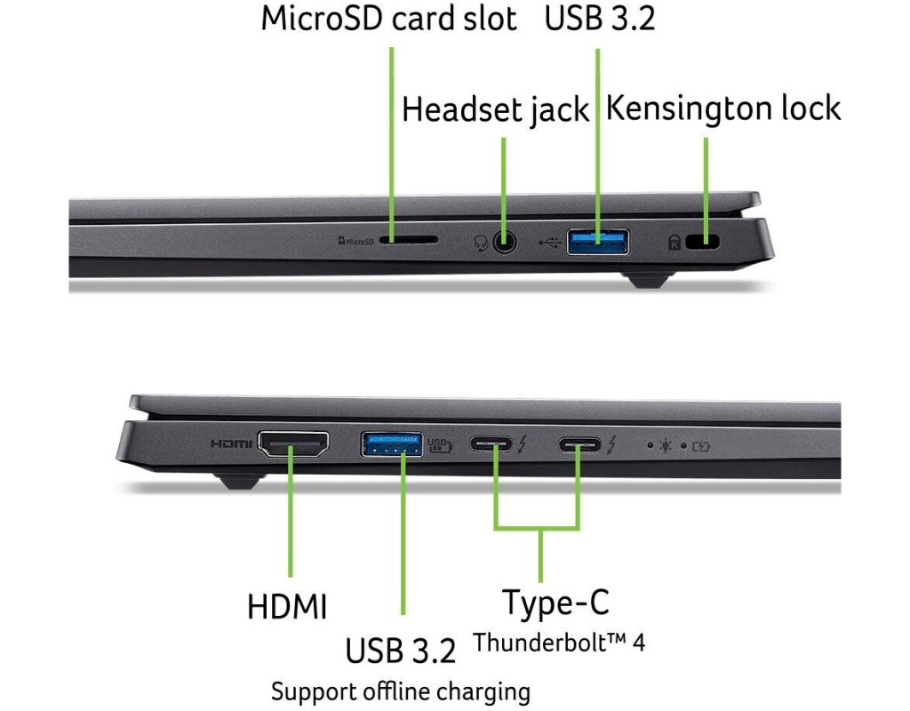 Оснащений енергоефективним процесором Intel Core Ultra (серія 2) та надшвидкою вбудованою пам'яттю Swift X 14 без проблем справляється з ресурсоємними ШІ-завданнями та багатозадачністю, забезпечуючи виняткову продуктивність та час автономної роботи протягом усього дня для ваших найамбітніших проєктів.