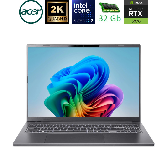 Потужність Acer з Intel Inside Оснащений енергоефективним процесором Intel Core Ultra (серія 2) та надшвидкою вбудованою пам'яттю Swift X 14 без проблем справляється з ресурсоємними ШІ-завданнями та багатозадачністю, забезпечуючи виняткову продуктивність та час автономної роботи протягом усього дня для ваших найамбітніших проєктів.