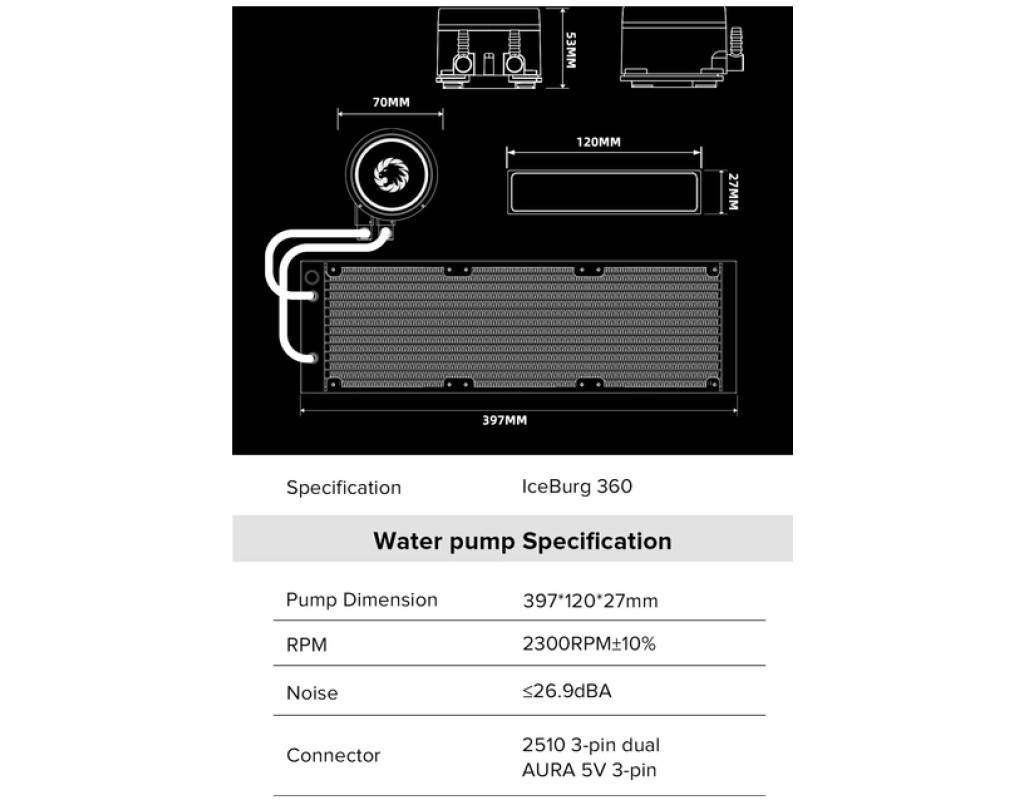 Рідинний кулер для процесора GameMax ICEBURG 360 Infinity, 360 мм, адресовані вентилятори RGB PWM з насосом, 300 Вт TDP, водяний кулер AIO для Intel LGA1851/1700/1200/115X, AMD AM5/AM4.