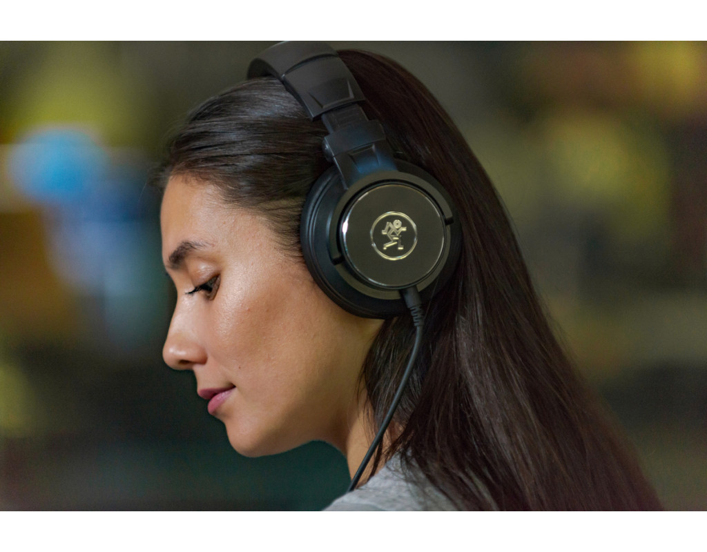 Mackie MC-150 - це закриті, накладні студійні навушники з пасивною шумоізоляцією і розширеним низькочастотним відтворенням для співаків, музикантів і діджеїв. Особливості інтерфейсу Великі 50-мм динаміки забезпечують широку частотну характеристику від 15 Гц до 20 кГц, а м'які амбрушюри і регульоване наголов'я з м'якою підкладкою гарантують зручність носіння для тривалих виступів і занять. Ба більше, для зручного зберігання і транспортування навушники оснащені складною конструкцією, яка дає змогу їм акуратно поміщатися в м'яку сумку для перенесення, що додається. Комутація Односторонній 3-метровий кабель, що від'єднується, оснащений 3,5-мм стерео міні-роз'ємом, який фіксується в одному навушнику. Інший кінець кабелю має прямий штекер 3,5 мм, що дає змогу легко під'єднувати різні мобільні пристрої. Також у комплекті йде позолочений 1/4" адаптер для сумісності зі спеціальними підсилювачами для навушників, мікшерами та аудіоінтерфейсами. Потужні 50-мм динаміки Високоточні 50-мм динамічні драйвери дають частотну характеристику від 15 Гц до 20 кГц для балансу точності та розширеного відтворення низьких частот. Зручна оббивка М'яке регульоване наголов'я та відповідні амбушюри забезпечують ергономічну посадку впродовж кількох годин роботи, забезпечуючи оптимальне відтворення низьких частот і звукоізоляцію. Максимально міцний дизайн Міцний дизайн моделі розрахований на тривалий час і відповідає вимогам співаків, музикантів та інженерів у студії або вдома. Універсальні можливості Ця модель добре підходить для студійного моніторингу, діджеїнгу та персонального прослуховування. Характеристики:
