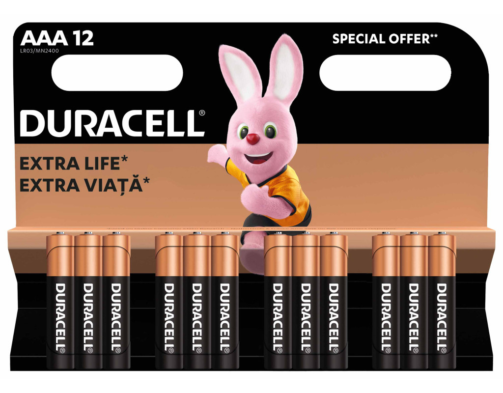 Duracell пропонує широкий асортимент батарейок, які можуть бути використані в електронних пристроях, що вимагають надійного забезпечення енергією. Батарейки Duracell ААА – це багатоцільові лужні батарейки, ідеальні для надійного живлення енергією пристроїв повсякденного використання, які потребують додаткової енергії. Лужні батарейки Duracell працюють набагато довше * (* порівняно з вугільно-цинковими батарейками в стандартному тесті IEC AAA 2015 року. Результати можуть відрізнятися залежно від пристрою або способу використання (www.iec.ch)) і доступні в розмірах AA, AAA, C, D і 9V. Технологія Duralock зберігає батарейки Duracell, які не використовувались, готовими до використання і зарядженими до 10 років при зберіганні в нормальних умовах. Ці батарейки дозволяють Вам вільно насолоджуватися використанням ваших приладів, даючи Вам продукт, на який ви можете покластися. Батарейки Duracell найкраще використовувати, коли ви шукаєте надійне джерело енергії тривалої дії для Ваших повсякденних пристроїв, таких як моторизовані іграшки, ліхтарики, портативні ігрові консолі, пульти дистанційного керування тощо. У 1969 році продукти Duracell були частиною місії Apollo 11, що зробило їх першими батарейками на Місяці. |