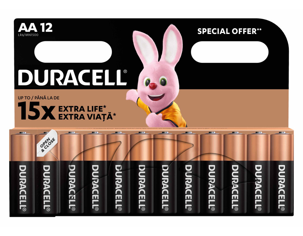 Duracell пропонує широкий асортимент батарейок, які можуть бути використані в електронних пристроях, що вимагають надійного забезпечення енергією. Батарейки Duracell АА – це багатоцільові лужні батарейки, ідеальні для надійного живлення енергією пристроїв повсякденного використання, які потребують додаткової енергії. Лужні батарейки Duracell працюють до 15 разів довше * (* Порівняно з провідними цинковими батарейками AA в тесті цифрових фотоапаратів із високим рівнем споживання енергії IEC AA 2021 (www.iec.ch). Результати можуть відрізнятися залежно від пристрою та способу використання) і доступні в розмірах AA, AAA, C, D і 9V. Технологія Duralock зберігає батарейки Duracell, які не використовувались, готовими до використання і зарядженими до 10 років при зберіганні в нормальних умовах. Ці батарейки дозволяють Вам вільно насолоджуватися використанням ваших приладів, даючи Вам продукт, на який ви можете покластися. Батарейки Duracell найкраще використовувати, коли ви шукаєте надійне джерело енергії тривалої дії для Ваших повсякденних пристроїв, таких як моторизовані іграшки, ліхтарики, портативні ігрові консолі, пульти дистанційного керування тощо. У 1969 році продукти Duracell були частиною місії Apollo 11, що зробило їх першими батарейками на Місяці. |