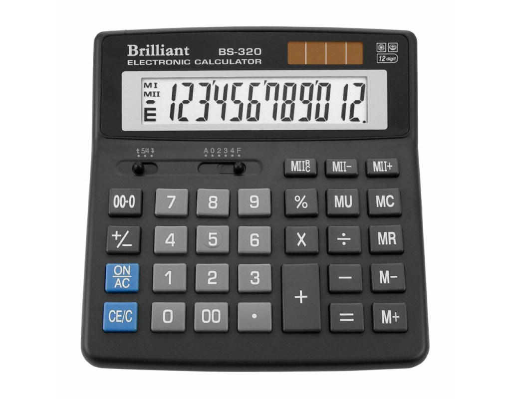 Калькулятор Brilliant BS-320 допоможе легко зробити різні підрахунки, обчислити відсотки, підрахувати підсумкову суму. Володіє такими функціями як: автоматичне вимикання живлення, захист від залипання клавіш.