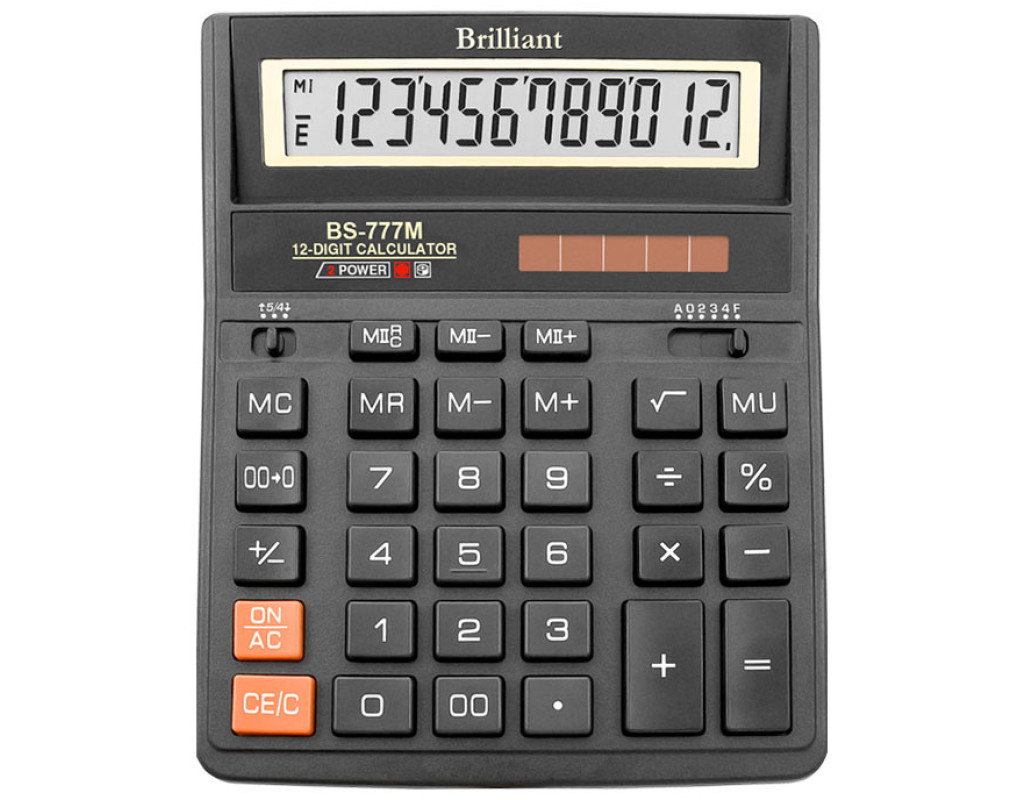 Brilliant BS-777M - 12-розрядний зручний професійний калькулятор. Добре підійде для роботи з грошовими сумами в бухгалтерії, касах, і тд. Має два джерела живлення. Калькулятор допоможе легко зробити різноманітні підрахунки, обчислити відсотки, підрахувати підсумкову суму.