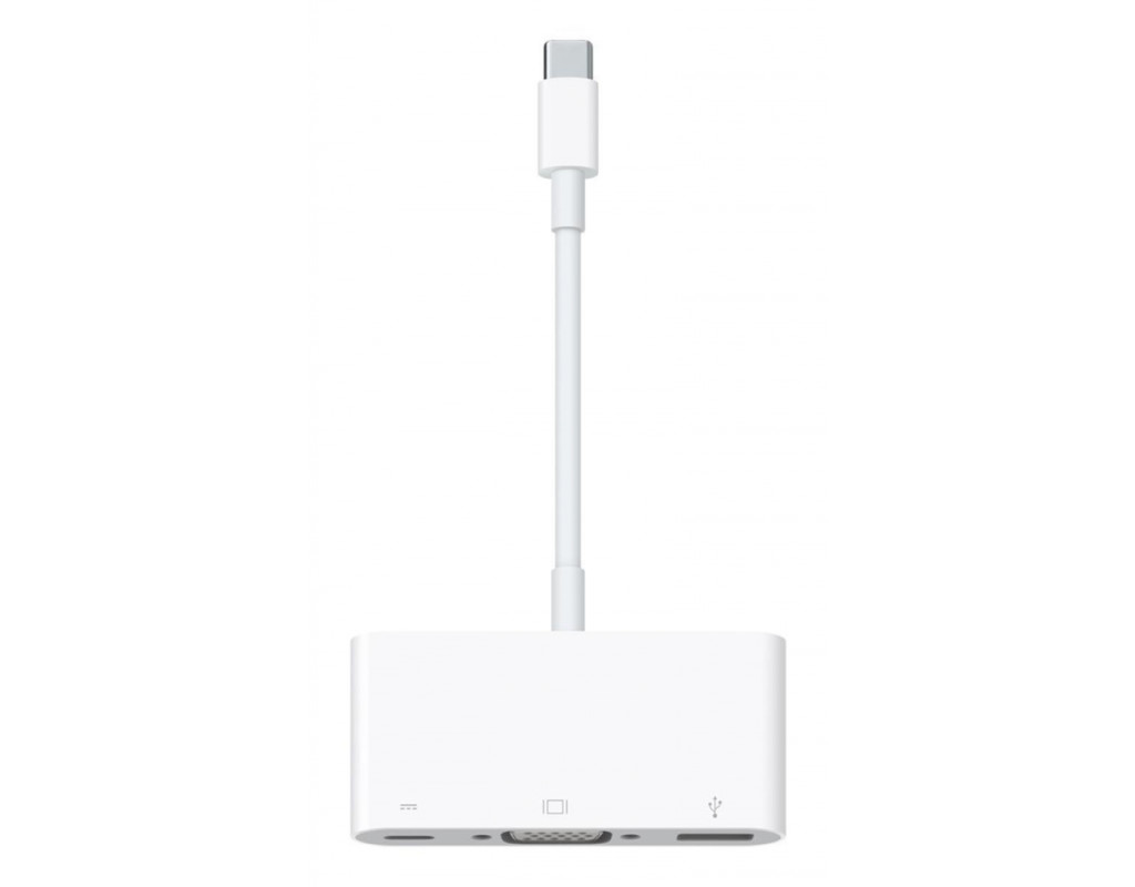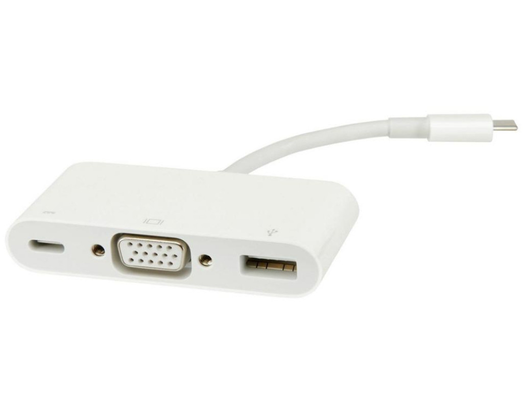 | Адаптер Apple USB-C to VGA Multiport Adapter (MJ1L2ZM/A) - це багатопортовий VGA-адаптер USB-C, який дозволяє одночасно підключати до MacBook c портом USB-C пристрій зі стандартним USB-роз'ємом, VGA-монітор і кабель для зарядки. Багатопортовий адаптер USB-C/VGA дозволяє дублювати зображення з екрану MacBook на телевізор з підтримкою VGA або відображати його з роздільною здатністю до 1080p HD-якості. Крім того, він підтримує передачу відеоматеріалів, таких як фільми і відеоролики. Просто підключіть адаптер одним роз'ємом до порту USB-C вашого MacBook, а іншим — до телевізора або відеопроектора через кабель VGA (продається окремо). Використовуйте стандартний порт USB, щоб підключити флеш-накопичувач, камеру або USB-кабель для синхронізації і зарядки вашого iPhone, iPad або iPod. Крім того, ви можете підключати до USB-порту-C кабель для зарядки, щоб зарядити ваш MacBook. |