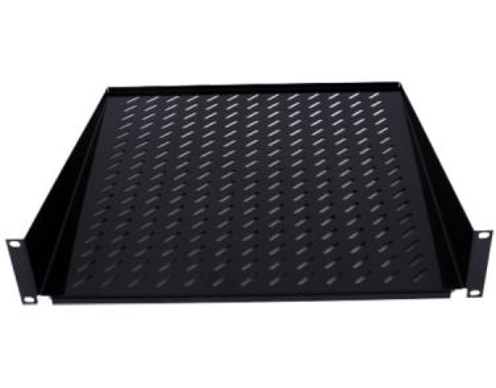 Консольна полка. Кріпиться до 19 "рейках шафи тільки з тильного боку, тому призначена на невисоку навантаження до 25 кг. Глибиною до 400 мм. Для посилення несучої здатності можуть використовуватися спеціальні напрямні, які кріпляться до задніх рейках шафи і підтримують полку ззаду. Монтажна висота 2U.