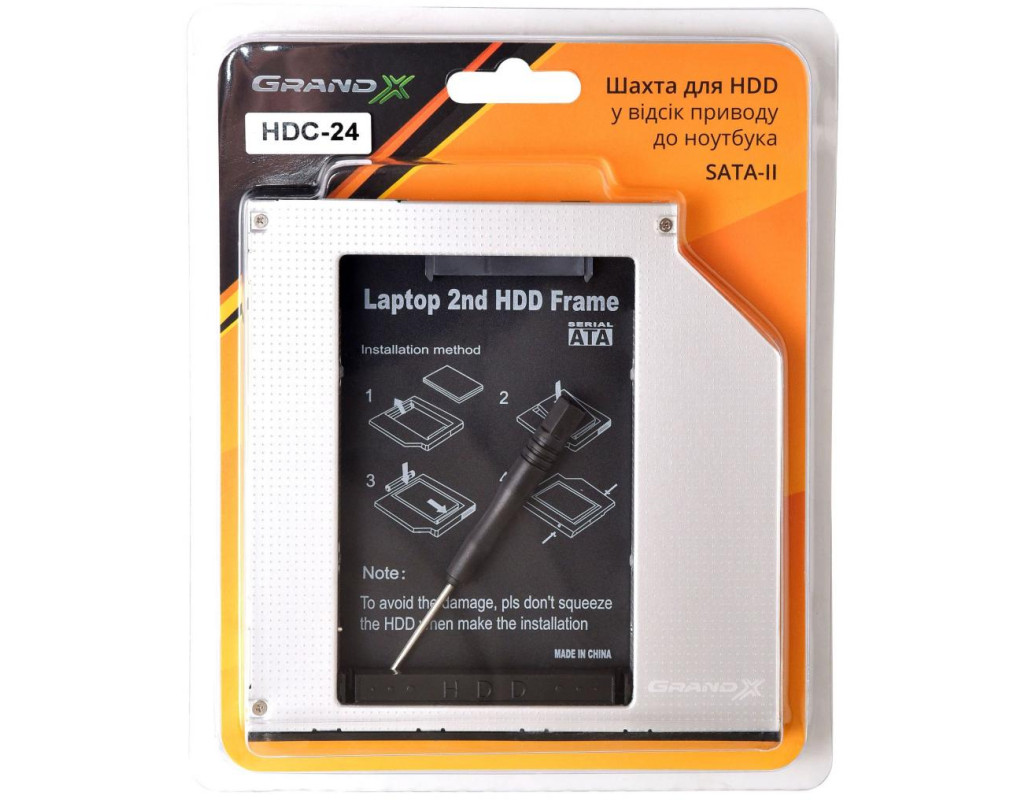 Перехідник Grand-X HDD 2.5" to notebook ODD SATA/mSATA (HDC-24N)- адаптер для підключення HDD 2.5" у відсік приводу ноутбука. Адаптер призначений для підключення другого жорсткого диска (наприклад SSD) в ноутбук замість приводу CD/DVD/Blue Ray.