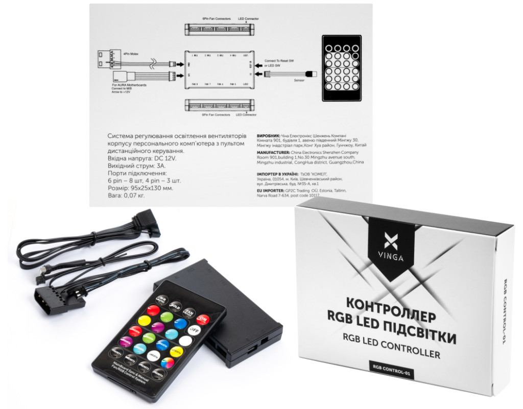 Модуль управління підсвічуванням Vinga RGB control-01 для RGB fan-01, fan-03, fan-04 |