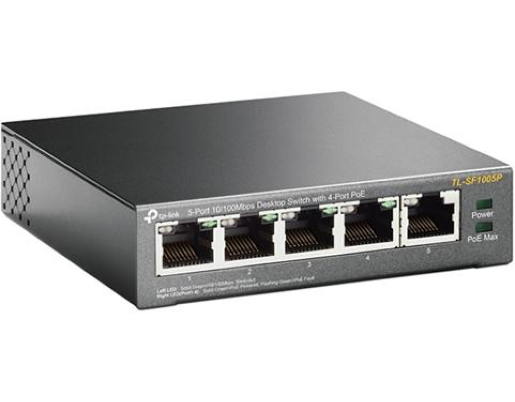 | TL-SF1005P - 5-портовий 10/100 Мбіт / с настільний комутатор, який не потребує настройки і володіє 4 портами PoE. Вони можуть автоматично визначати і подавати живлення пристроїв на базі стандарту IEEE 802.3af, що підтримують функцію PoE. У цьому випадку дані і електроенергія передаються по одному кабелю, що дозволяє вам встановлювати мережеві пристрої навіть в тих місцях, де відсутній доступ до розетки або лініях електропередач. |