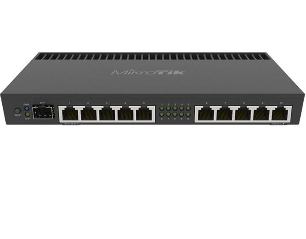 | Mikrotik RB4011iGS + RM - це гігабітний роутер на 10 Gigabit Ethernet портів і з одним оптичним портом SFP +. Маршрутизатор обладнаний чотирьох ядерним процесором. У роутері використовується потужний чіп Quad Core A15 (розроблений в лабораторії Annapurma компанії Amazon). Такий же чіп використовується в RB1100AHx4. Впроваджена підтримка PoE.