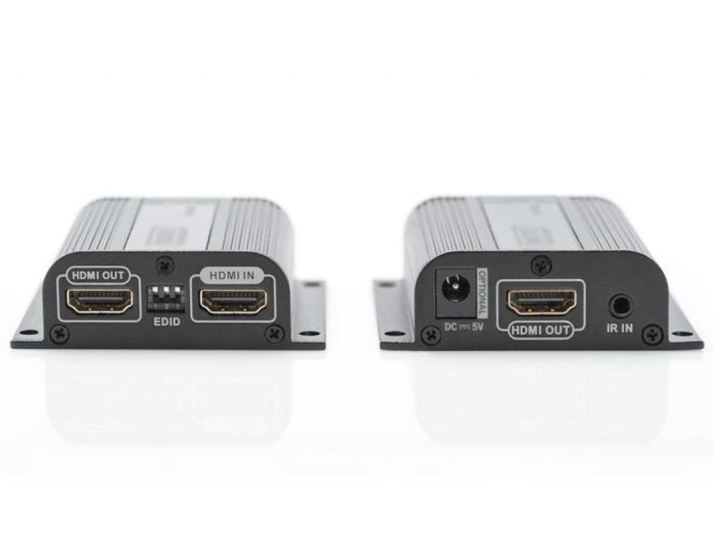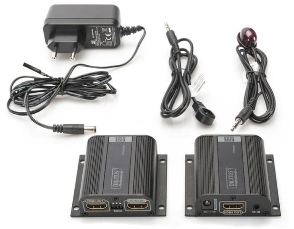 Перехідник HDMI UTP 50m Black DIGITUS (DS-55100-1) - легке і зручне розподіл HDMI сигналів: встановлюйте ваші монітори там, де хочете, без врахування обмежень довжини кабелю HDMI. Кабель збільшує максимальну довжину кабелю HDMI до 50 м з використанням звичайного мережевого кабелю між передавачем і приймачем. HDMI - мультимедійний інтерфейс високої чіткості, який здатний передавати на пристрій інформацію більш високої якості, ніж аналогові сигнали. Інформація, передана через HDMI, надає собою стиснені цифрові дані. HDMI в основному використовується для передачі відео потоку. Аналогові кабелі не можуть передавати 4K відео, а HDMI підтримує передачу відео настільки високої якості. HDMI відмінно справляється з передачею аудіо і об'ємного звуку. Завдяки цьому, в більшість сучасних телевізорів і моніторів вбудовані акустичні системи. |